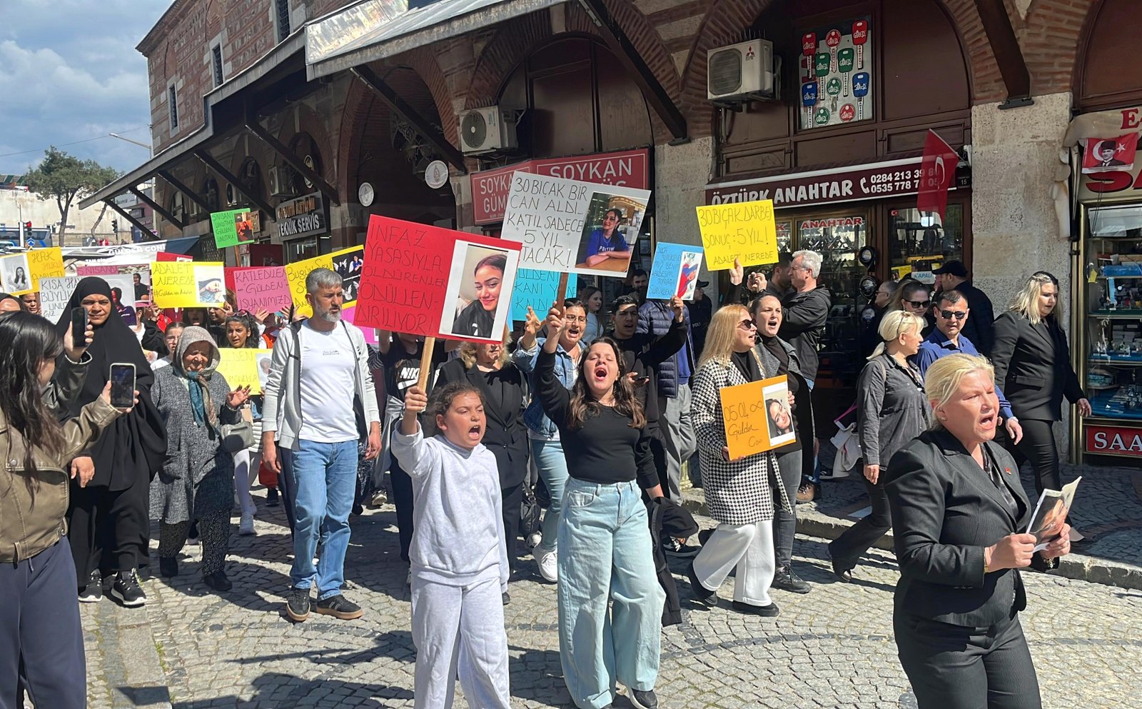 Coni ailesi, Gülden’in ölüm yıl dönümünde yürüyüş düzenlendi. Kent merkezindeki Eski Cami’den başlayıp Saraçlar Caddesi’nde sona eren yürüyüşte, aile ve yakınları sloganlar attı. Aile adına basın açıklamasını okuyan Gülden Coni’nin ablası Nurhan Alüzrek, “Gülden’in tek yaptığı şey, yaşamaya devam etmekti ama karşısına çıkan bir insan değil, bir vahşetti. Kardeşim Gülden, 30 bıçak darbesiyle katledildi ve ben bunu özellikle tekrar ediyorum. Çünkü bu bir sayı değil, bu bir vahşetin boyutudur. 30 darbe bir insanı öldürmek için değil, bir hayatı parçalamak içindir. Bu sadece Gülden’in bedenine değil, bizim hayatımıza da indirilen 30 ayrı darbedir. Her biri bizim içimizde hala kanayan 30 ayrı yaradır. O gün sadece bir insan ölmedi. O gün bir ev sustu, bir anne çöktü, bir baba yarım kaldı. O gün bizim hayatımız durdu. Ama dünya dönmeye devam etti” diye konuştu.