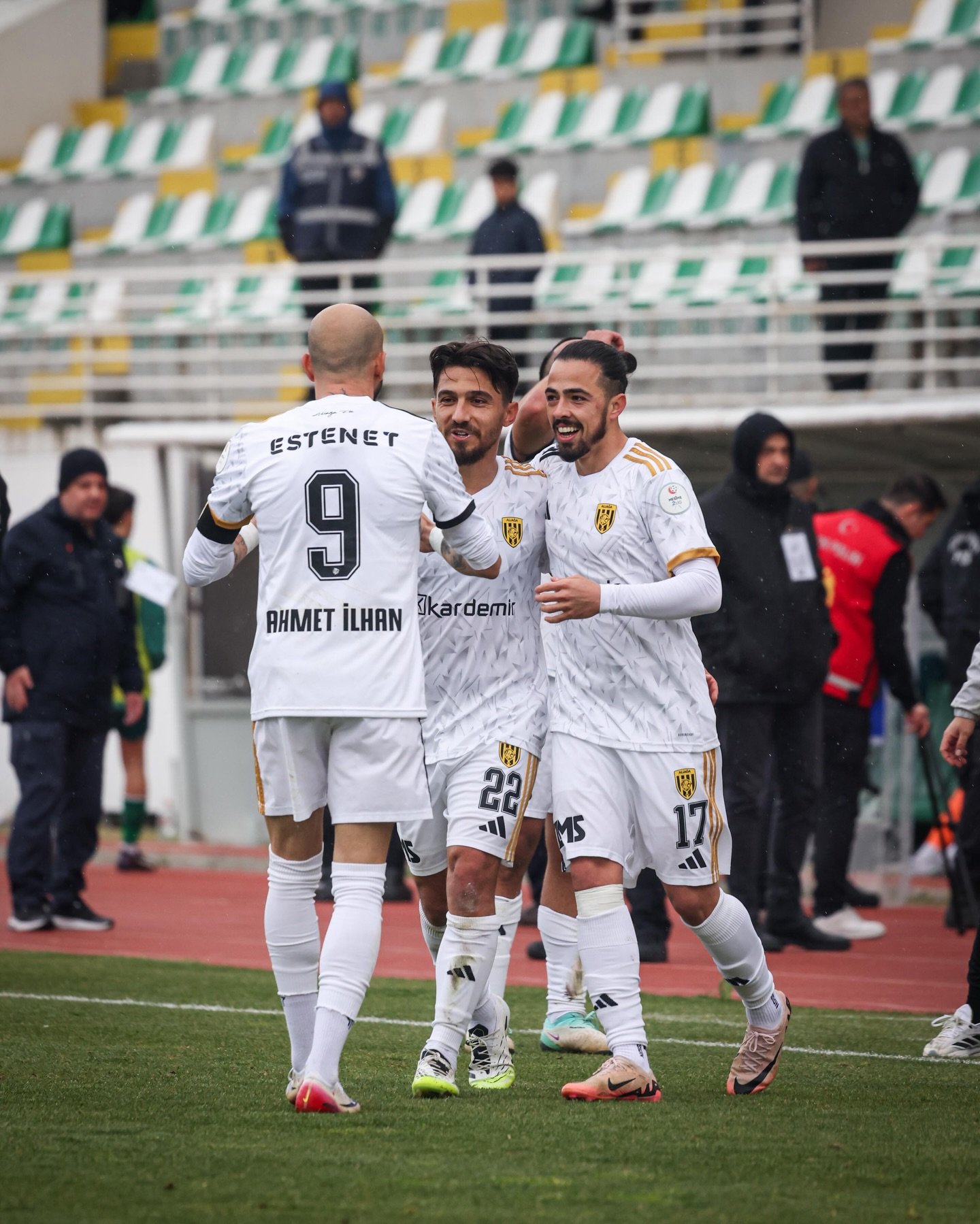 İZMİR, (DHA)- 2’nci Lig Kırmızı Grup’ta deplasmanda Kırklarelispor’u 90+4’üncü dakikada Harun Kavaklıdere’nin golüyle 2-1 mağlup eden Aliağa Futbol, zirve takibini sürdürdü. Evinde 5-1 kaybederek 6 yıl sonra ilk iç saha mağlubiyetini aldığı Isparta 32 Spor karşılaşması sonrası Kırklareli deplasmanından 3 puanla dönen İzmir temsilcisi lider Bursaspor’la arasındaki 6 puanlık farkın açılmasına izin vermedi. Son 3 haftada Menemen FK, 68 Aksaray Belediye Spor (D) ve Bursaspor’la karşılaşacak sarı-siyahlılar tüm maçlarını kazanıp Bursaspor’un hata yapmasını bekleyecek. Deplasmanda oynadığı son 6 maçı kazanan Aliağa ekibi ligin ilk yarısında Bursaspor’la deplasmanda 0-0 berabere kalmıştı. Aliağa Futbol’da Erhan Kartal sarı kart cezalısı durumuna düştü.
