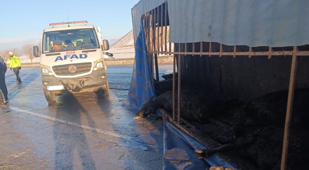 Kazada TIR’lardaki yaklaşık 10 büyükbaş hayvan ölürken, 10 büyükbaş hayvan ise yaralı olarak kurtarıldı. Kazanın ardından Karayolları ekipleri tarafından tuzlama çalışması gerçekleştirildi. Devrilen TIR’lar, çekiciyle yoldan kaldırıldı.
