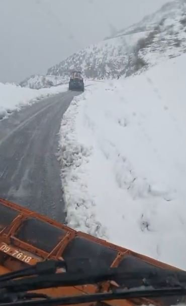 Karayolları Bölge Müdürlüğü ekipleri iş makineleri ile yolun ulaşıma açılması için çalışma başlattı. Ekiplerin yolu açma çalışmaları sürüyor. (DHA)