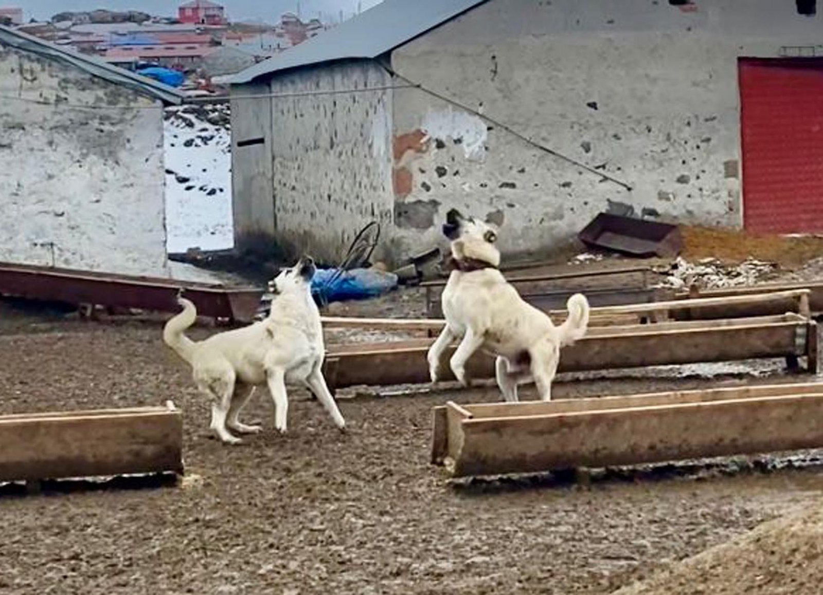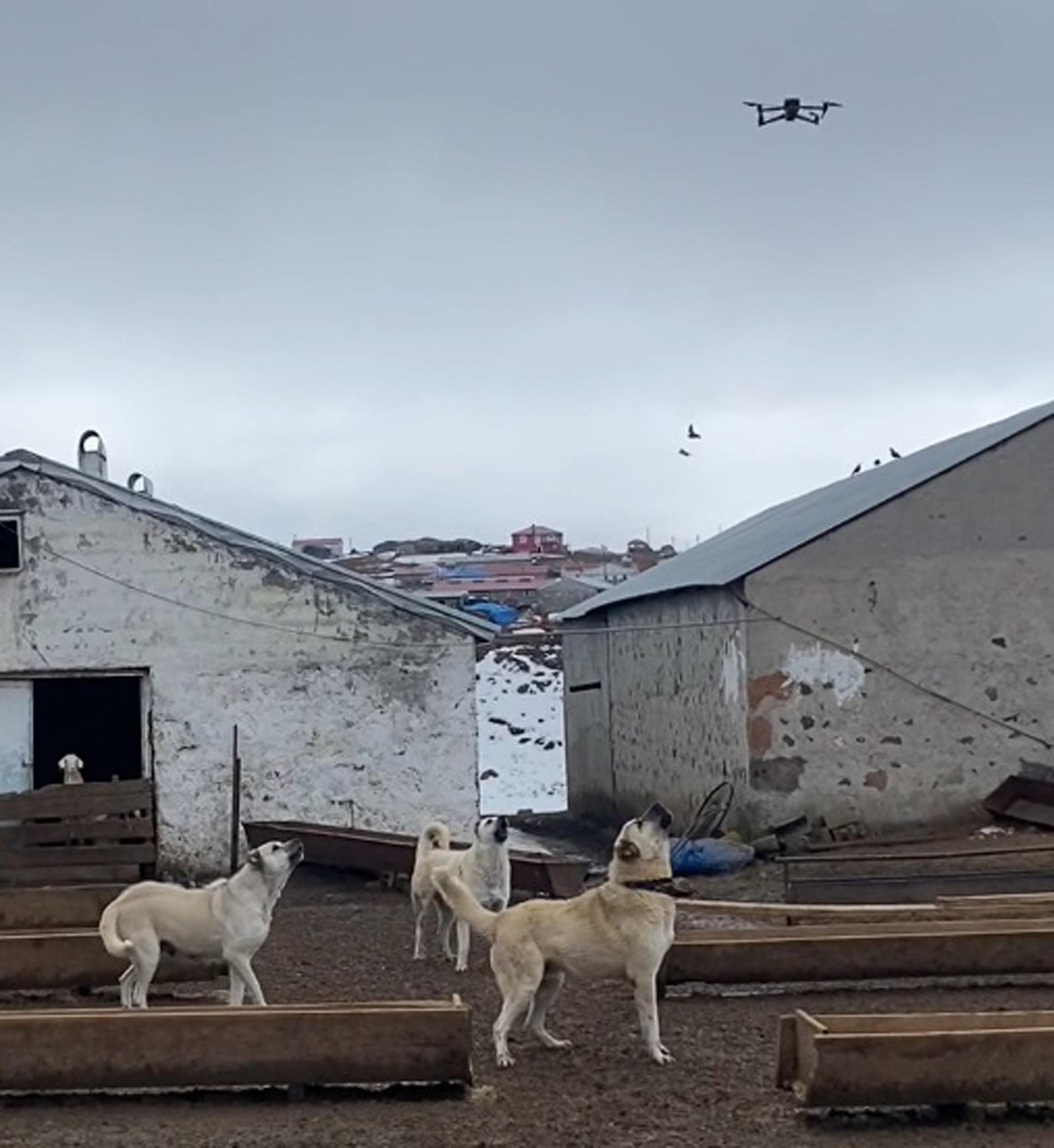 Bedir ALTUNOK/KARS, (DHA)- KARS’ın Arpaçay ilçesindeki bir çiftlikte dronu fark eden çoban köpeklerinin havlayıp tepki gösterdiği anlar görüntülendi.