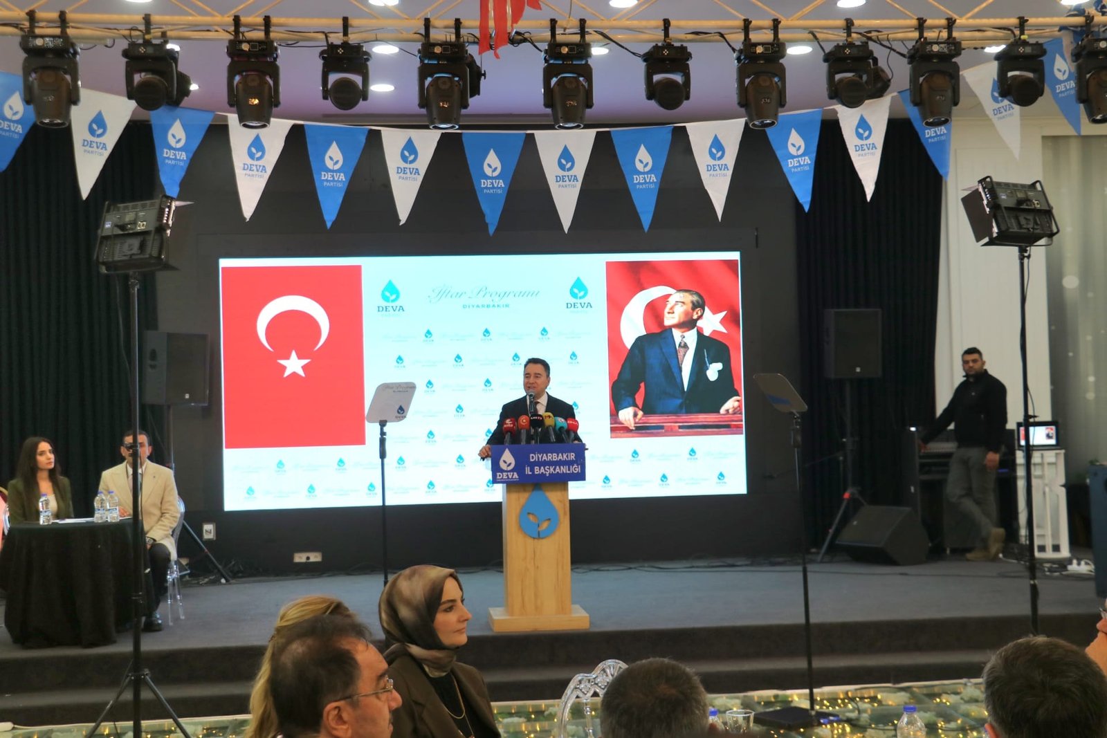 Bir dizi temaslarda bulunmak üzere Diyarbakır’a gelen Demokrasi ve Atılım Partisi (DEVA) Genel Başkanı Ali Babacan, partisinin il başkanlığı tarafından Kayapınar ilçesinde bir düğün salonunda düzenlenen iftar programında partililerle bir araya geldi. Programa, DEVA Partisi Genel Başkan Yardımcıları Mehmet Emin Ekmen ve Sadullah ergin, Genel merkez kadın kolları başkan yardımcıları Melis Kandemir ile Meral kahraman, DEVA Partisi İl Başkanı Remzi Kaymak ve partililer katıldı. Burada konuşan Babacan, “1 Ekim 2024 tarihinde başlayan sürecin ilk gününden itibaren, ‘Başarı ihtimali yüzde 5 bile olsa, biz bu yüzde 5 ihtimali bile destekleyeceğiz. Değil elimizi, bedenimizi dahi bu taşın altına koymaya hazırız, yeter ki barış olsun, yeter ki bu ülke huzura kavuşsun’ dedik. Ülkenin Cumhurbaşkanından aylar önce sürece desteğimizi ilan ettik. Sözümüzün gereğini de yerine getirdik. Her aşamada tavsiyelerimizi sunduk, komisyon çalışmalarına kıymetli katkılar verdik. Önümüzdeki aylarda da yapılacak çalışmaların bizzat içinde olacağız ve inşallah kırk yıldır özlediğimiz kalıcı barışa hep beraber ulaşacağız. Şunu da özellikle vurgulamak isterim ki, barış süreci hedefine ulaştıktan hemen sonra, sıra çözüm sürecine gelmelidir. Demokratik haklarla ilgili çalışmalar gecikmeksizin başlamalıdır” dedi.
