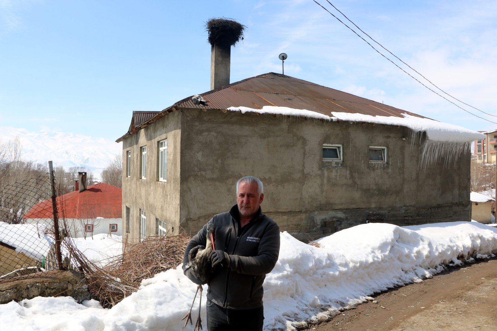 Yaşar KAPLAN/YÜKSEKOVA (Hakkari), (DHA)- HAKKARİ’nin Yüksekova ilçesinde İlhan Akış (50), karlar içinde donmak üzereyken bulduğu leyleği evine götürüp 2,5 ay sıcak ortamda bakarak besledi. Sağlığına kavuşan leylek, havaların ısınmasıyla birlikte doğal yaşam alanına bırakıldı.