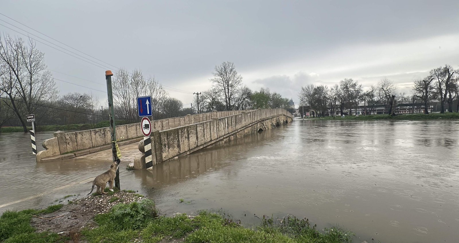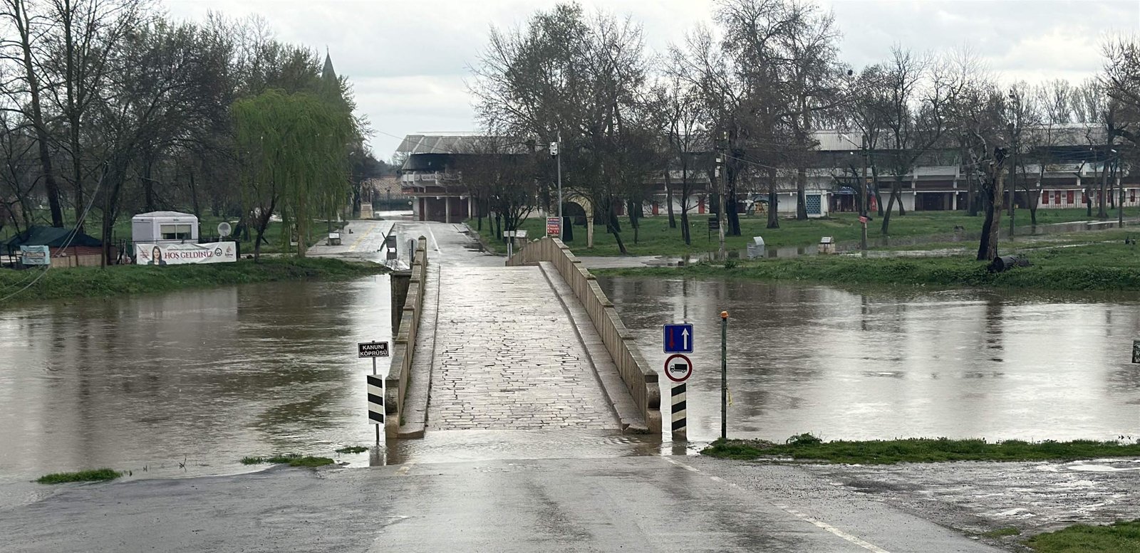 Tarihi Kırkpınar Yağlı Güreşleri’nin yapıldığı Sarayiçi mevkisinde süren taşkın riski nedeniyle girişler cuma günü kapatıldı. Bölgeye giriş yasağı bugün de devam ederken, ulaşımın sağlandığı köprülerde polis ekipleri önlem aldı. (DHA)