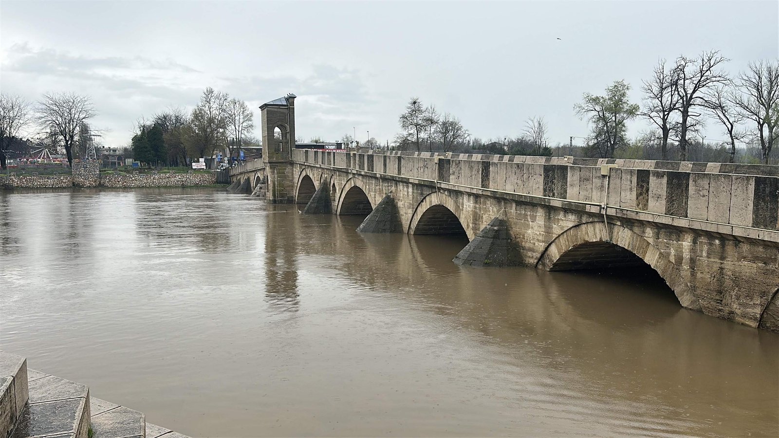 Olgay GÜLER/EDİRNE, (DHA)- BULGARİSTAN’da etkili olan yağışların ardından Edirne’de su seviyelerinde artış yaşanan Tunca ve Meriç nehirlerinde ‘sarı alarm’ uyarısı devam ediyor. Taşkın riski nedeniyle cuma günü kapatılan Kırkpınar Yağlı Güreşleri’nin yapıldığı Sarayiçi’ne, giriş yasağı da sürüyor.