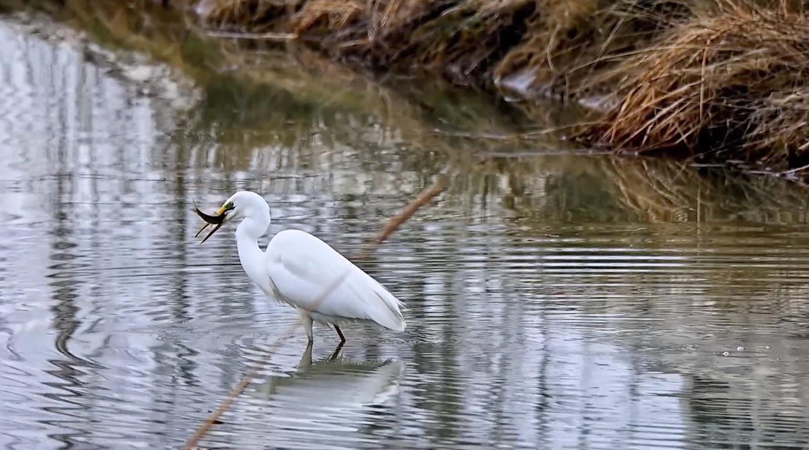 Muzaffer KOŞAN/ERZİNCAN, (DHA)- ERZİNCAN’daki Ekşisu Sazlığı’nda büyük ak balıkçıl avlanırken görüntülendi. Doğa fotoğrafçısı Fatih Civan’ın çektiği fotoğraflar Doğa Koruma ve Milli Parklar Genel Müdürlüğü’nün sanal medya hesaplarından paylaşıldı.