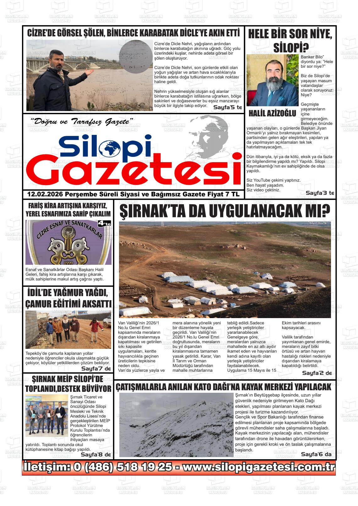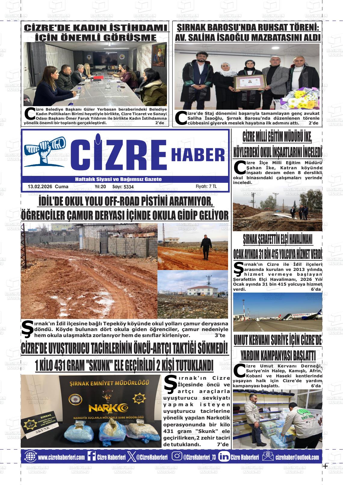 Şırnak Yerel Gazeteleri 13 Şubat 2026, Cuma Günü Manşeti