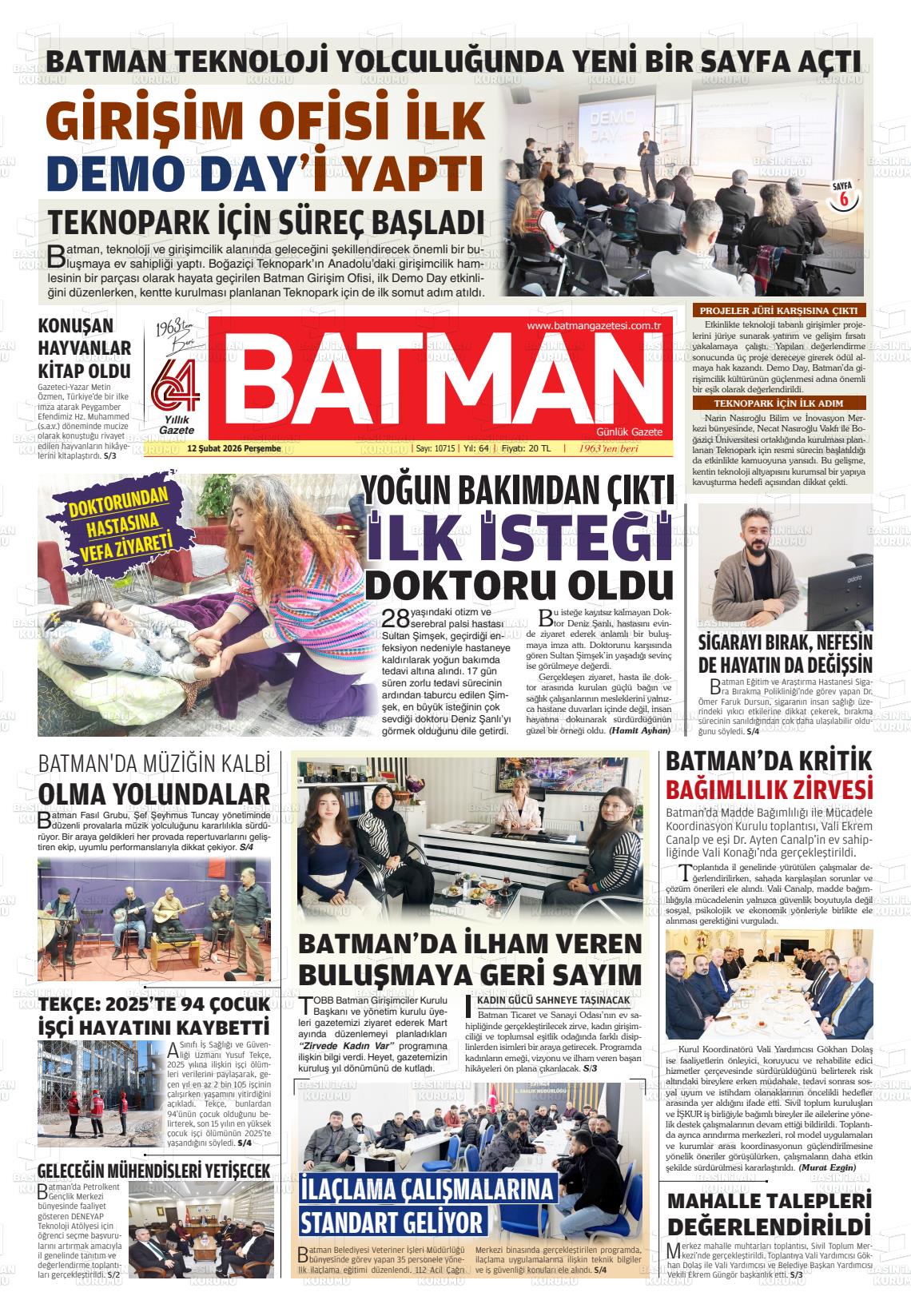 Batman Yerel Gazeteleri 12 Şubat 2026, Perşembe Günü Manşeti