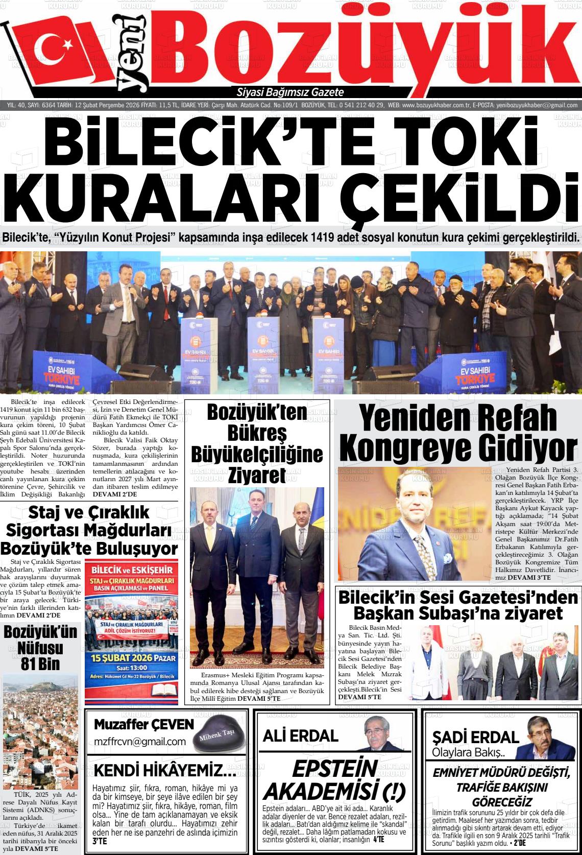 Bİlecİk Yerel Gazeteleri 13 Şubat 2026, Cuma Günü Manşeti