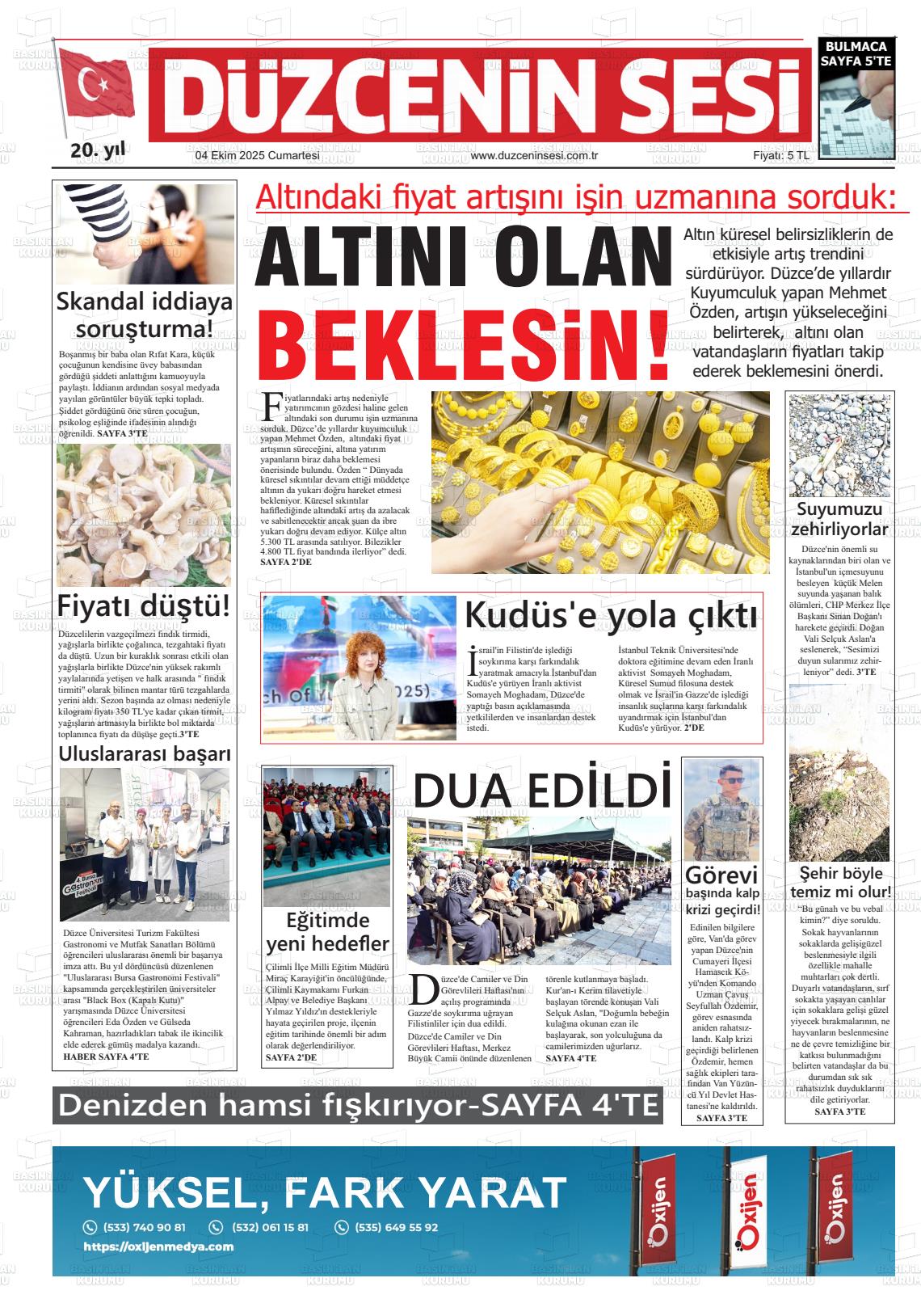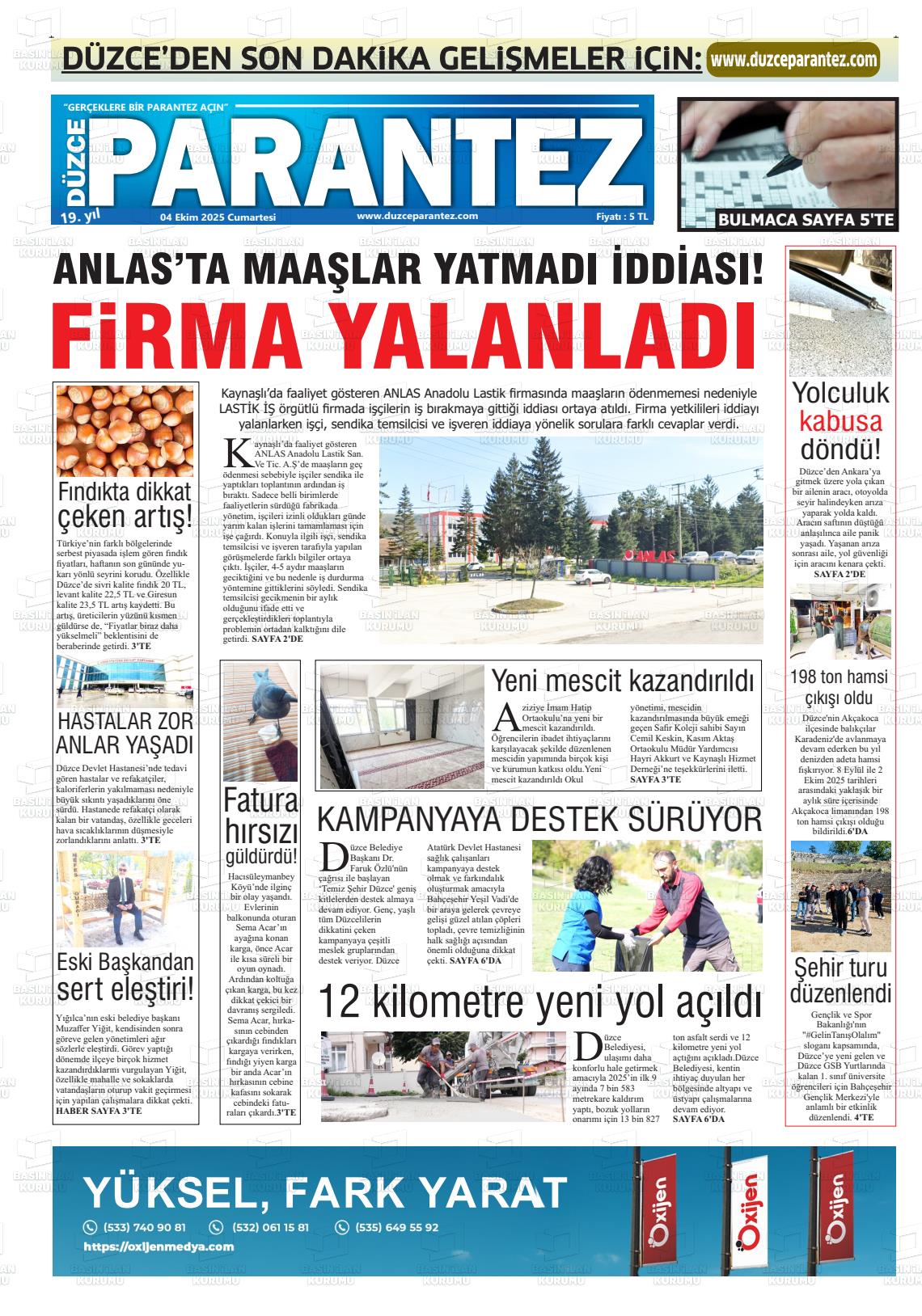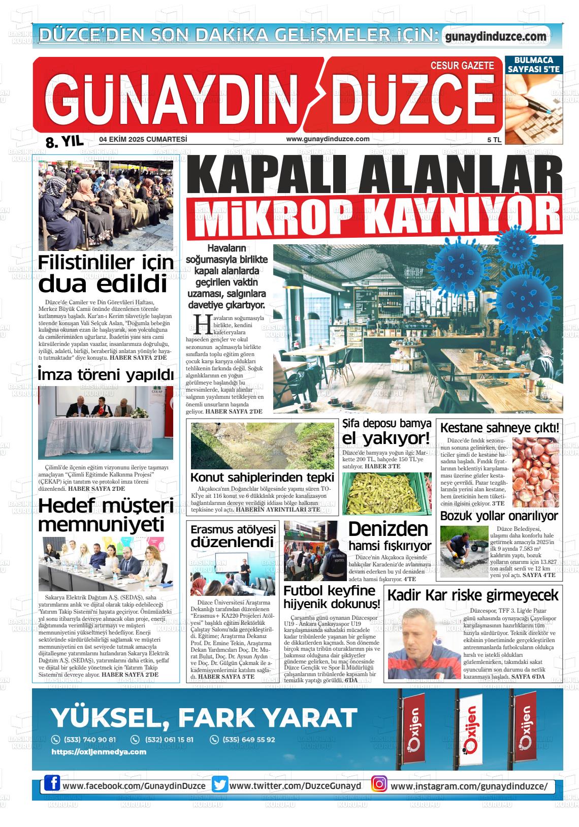Düzce Yerel Gazeteleri 13 Şubat 2026, Cuma Günü Manşeti