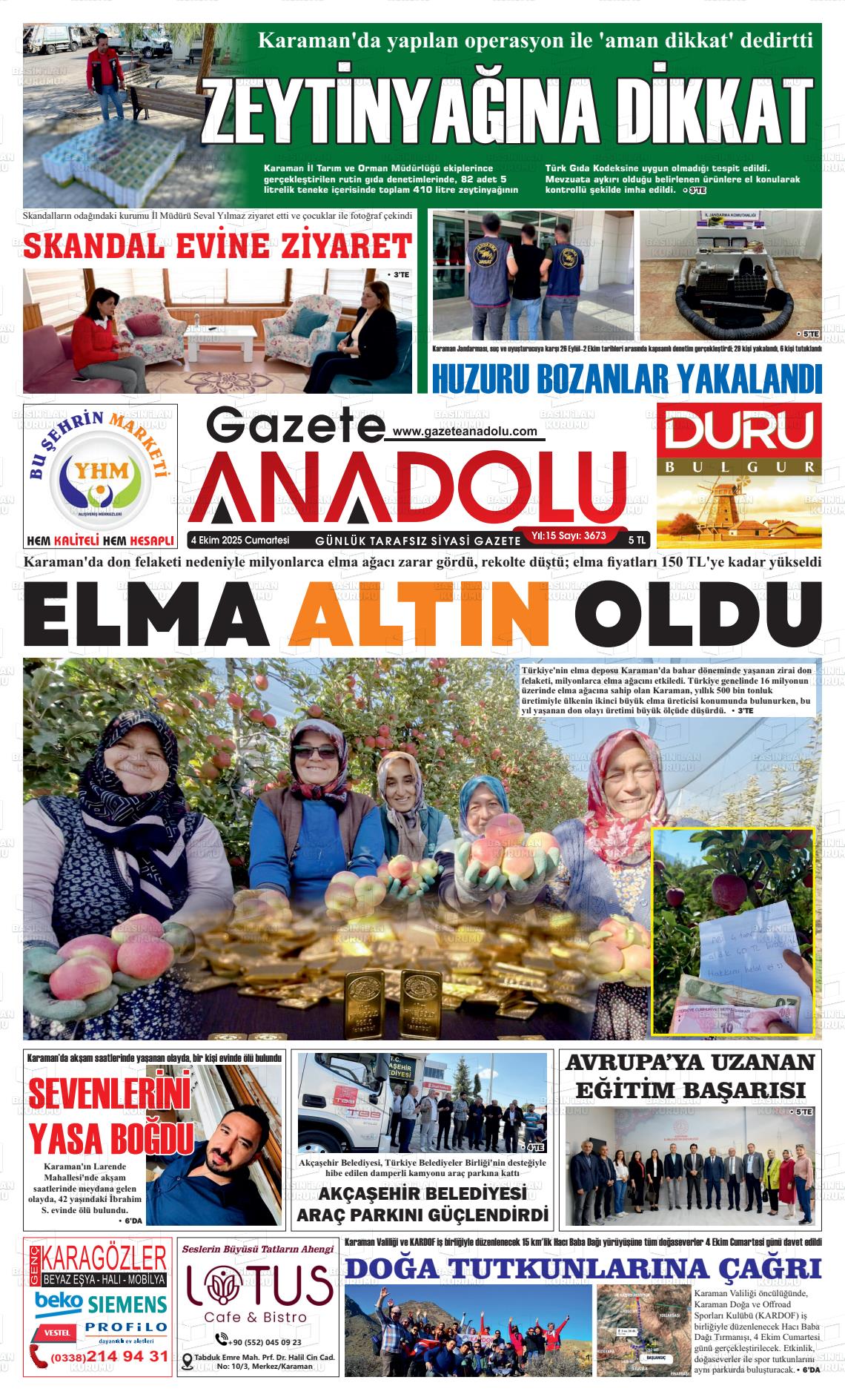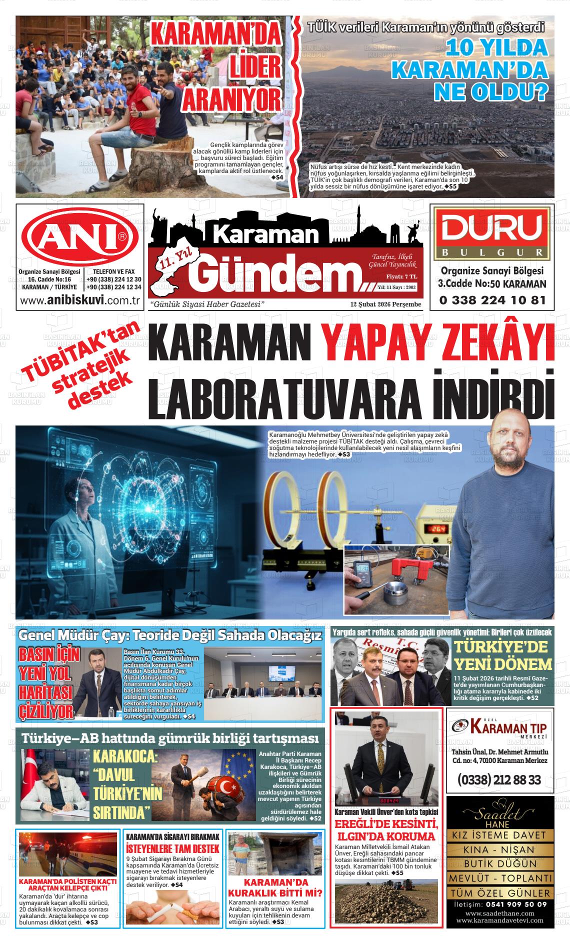 Karaman Yerel Gazeteleri 12 Şubat 2026, Perşembe Günü Manşeti