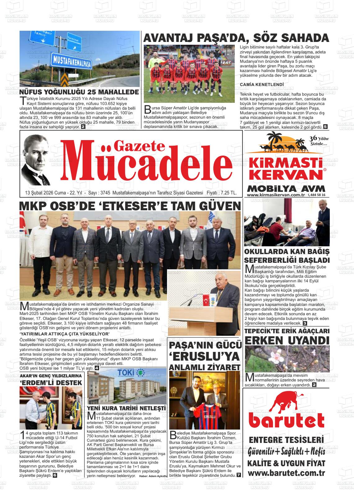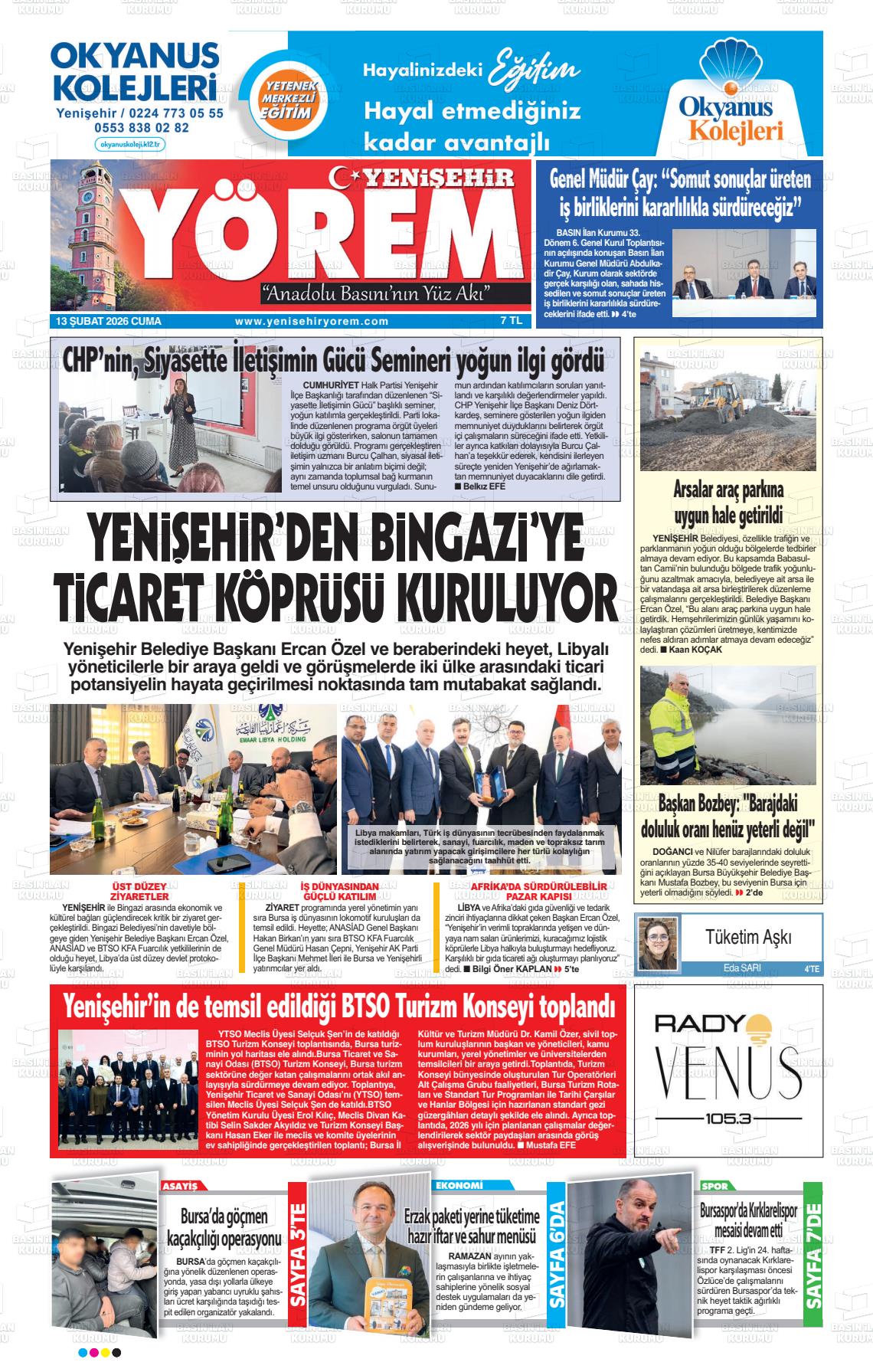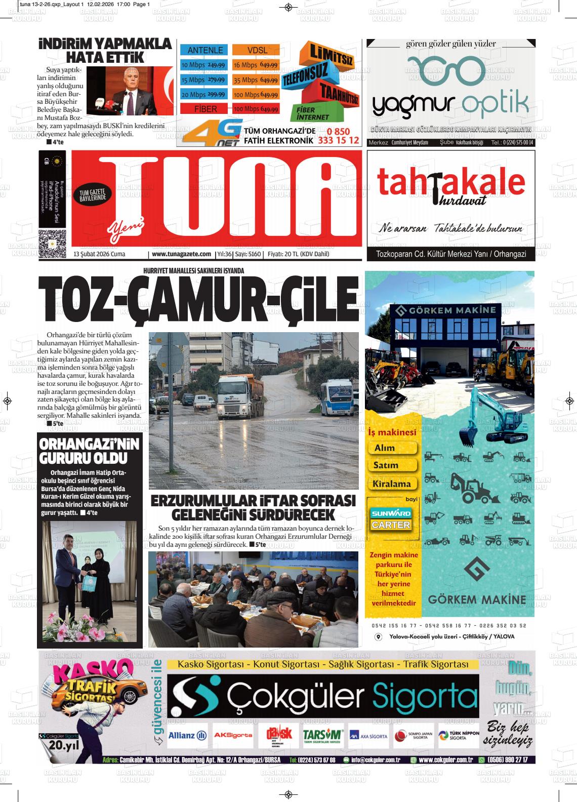 Bursa Yerel Gazeteleri 13 Şubat 2026, Cuma Günü Manşeti