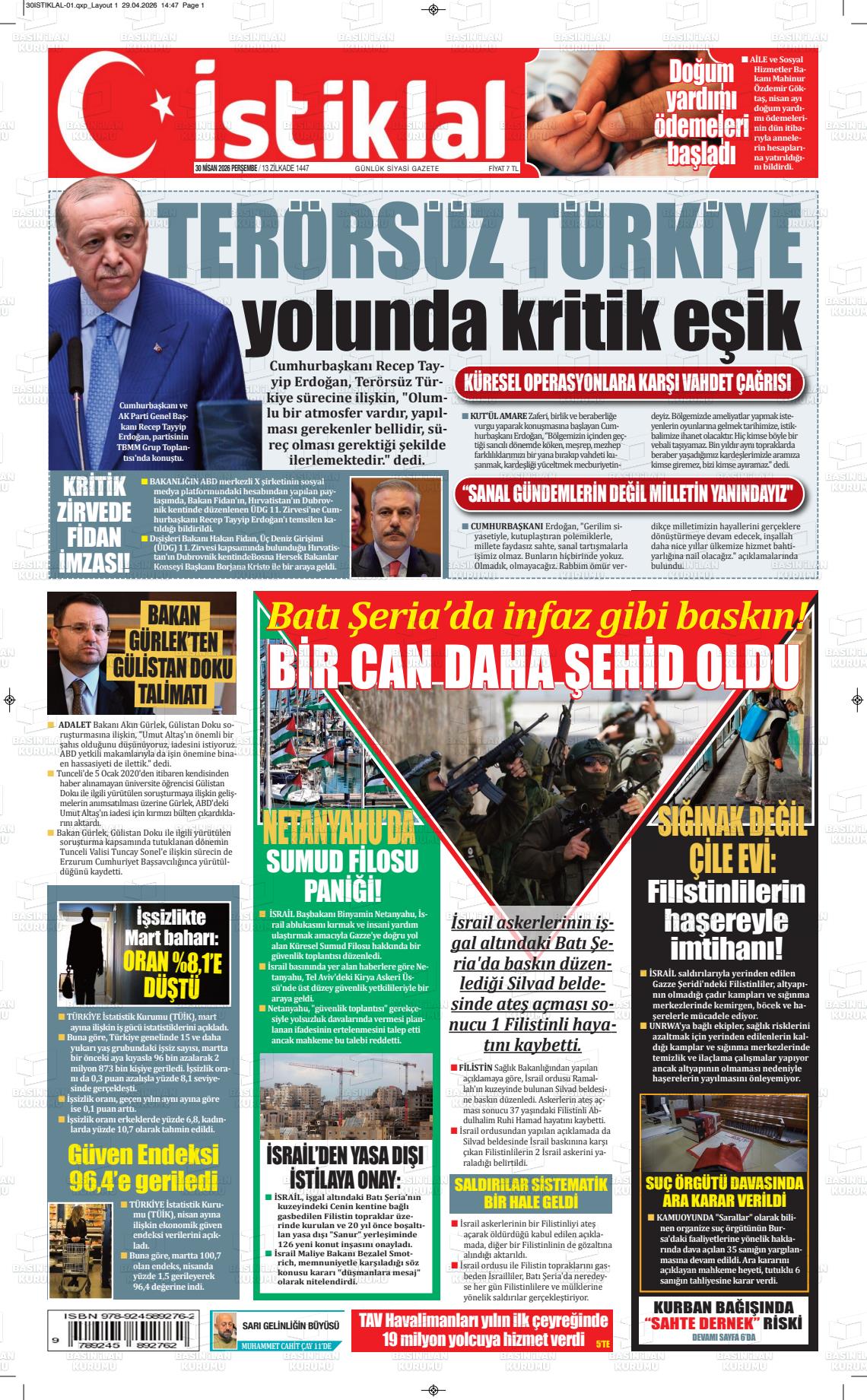 İstanbul Yerel Gazeteleri 19 Nisan 2026, Pazar Günü Manşeti