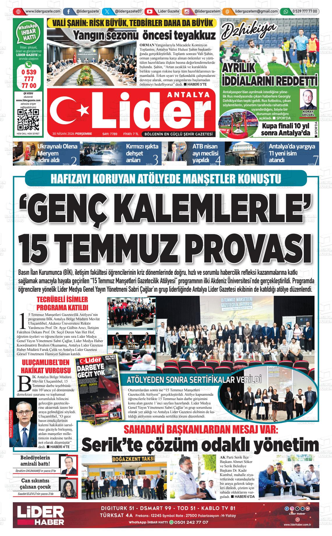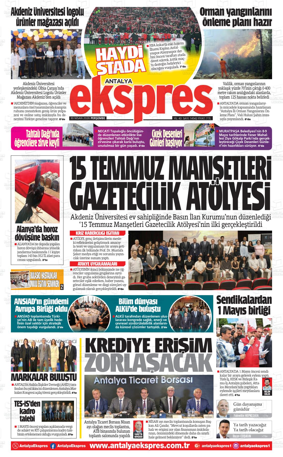 Antalya Yerel Gazeteleri 14 Nisan 2026, Salı Günü Manşeti
