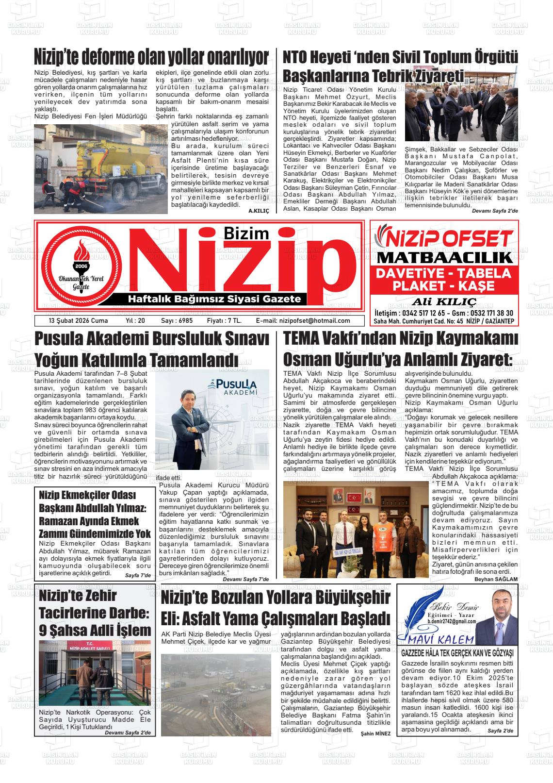 Gazİantep Yerel Gazeteleri 13 Şubat 2026, Cuma Günü Manşeti