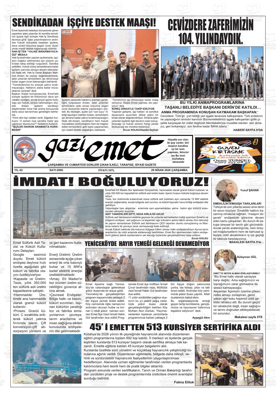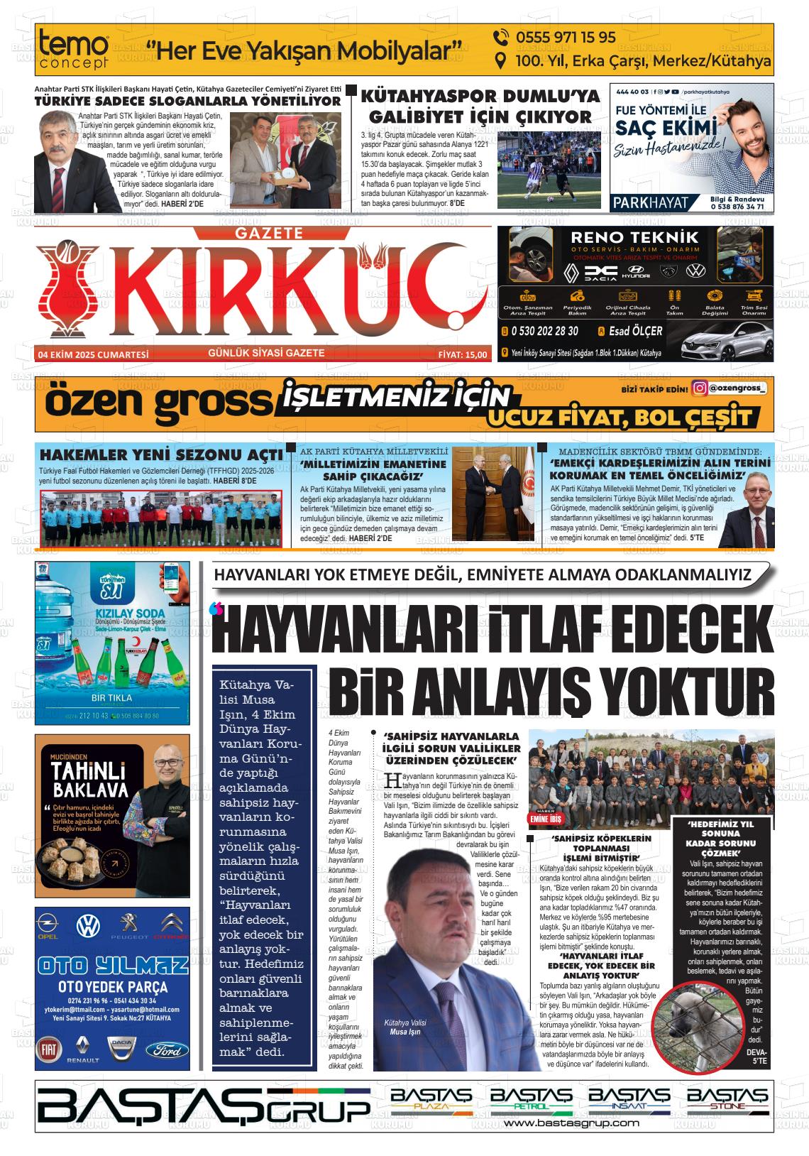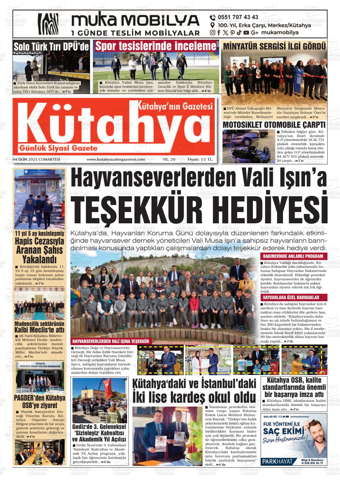 Kütahya Yerel Gazeteleri 14 Nisan 2026, Salı Günü Manşeti
