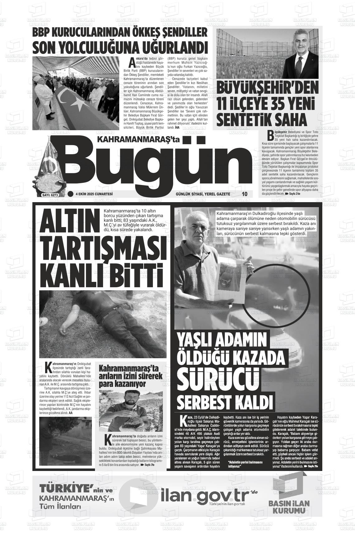 Kahramanmaraş Yerel Gazeteleri 04 Ekim 2025, Cumartesi Günü Manşeti