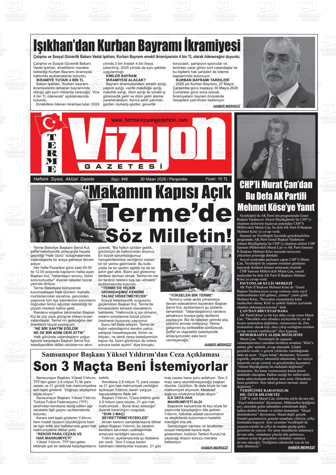 Samsun Yerel Gazeteleri 13 Nisan 2026, Pazartesi Günü Manşeti