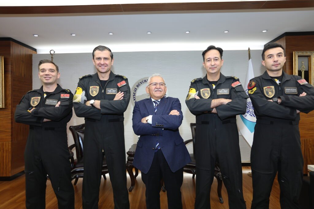 Festivalin ikinci günü olan 18 Ekim’de Recep Tayyip Erdoğan Millet Bahçesi semalarında adeta bir görsel şölen sunmaya hazırlanan SOLOTÜRK’ün 1. Pilotu Yarbay Murat Bakıcı, Garnizon Komutanı Hava Pilot Tuğgeneral Hasan Volkan Güleryüz ile birlikte Kayseri Büyükşehir Belediye Başkanı Dr. Memduh Büyükkılıç’ı makamında ziyaret etti. Başkan Büyükkılıç, Türkiye’nin gururu olan bu seçkin ekibi ve komutanlarını Kayseri‘de ağırlamaktan duyduğu onuru ve memnuniyeti dile getirdi. Ziyarette, SOLOTÜRK’ün gerçekleştireceği nefes kesici performansın detayları ve Kayseri halkının gösteriye olan yoğun ilgisi konuşuldu.