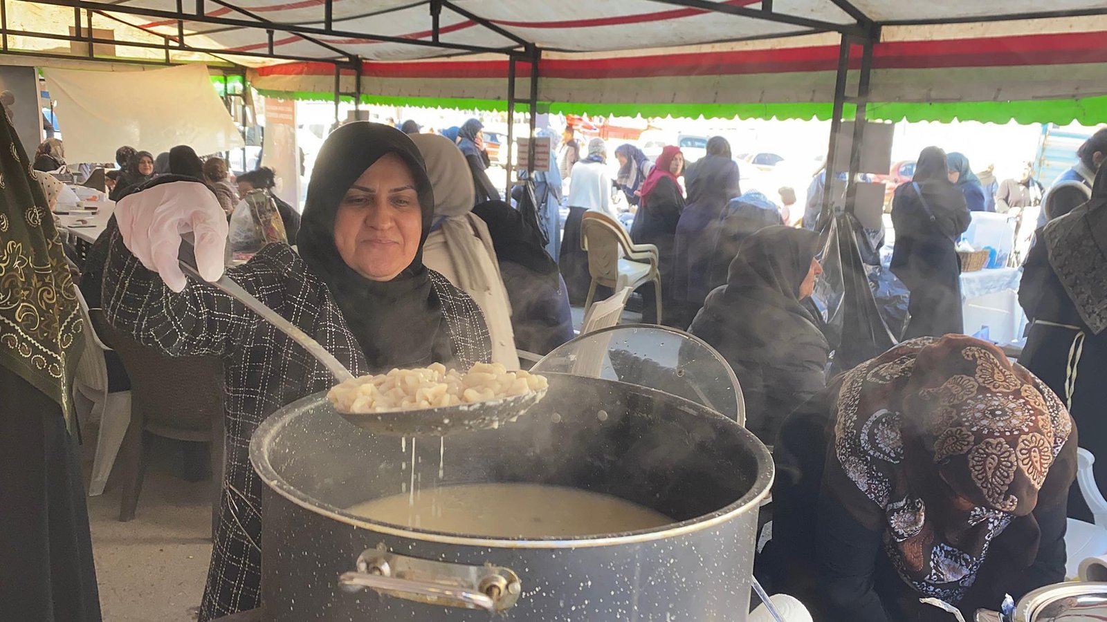 ABD ve İsrail, 28 Şubat 2026’da İran’a yönelik saldırı başlattı. Saldırının ilk gününde bombaların hedefi olan İran’ın güneyindeki Minab kentindeki bir ilkokulda 165 kız öğrenci hayatını kaybetti. Bu öğrencilerin ailelerine destek için Iğdır Ehlibeyt Alimleri Derneği, kampanya başlattı. Zübeyde Hanım Bulvarı’nda çadır kuran dernek yöneticileri kazanlarda pişirdikleri yiyecekleri, misafirlere ikram ederek elde ettikleri geliri oluşturdukları yardım kasasına atıyor. El emeği göz nuru ürünleri de satan kadınlar, yardım kampanyasını bir hafta sürdürmeyi planlıyor.