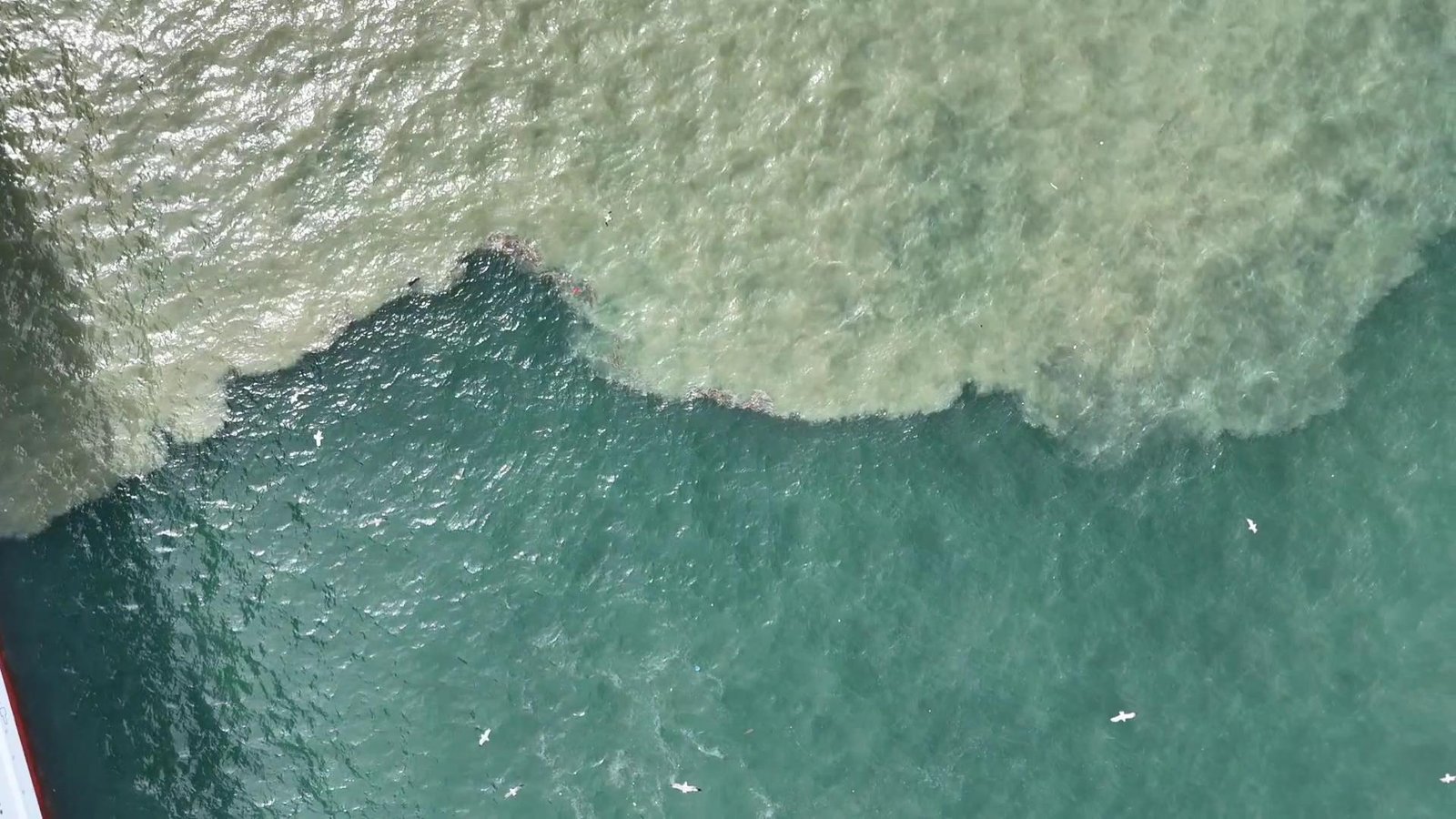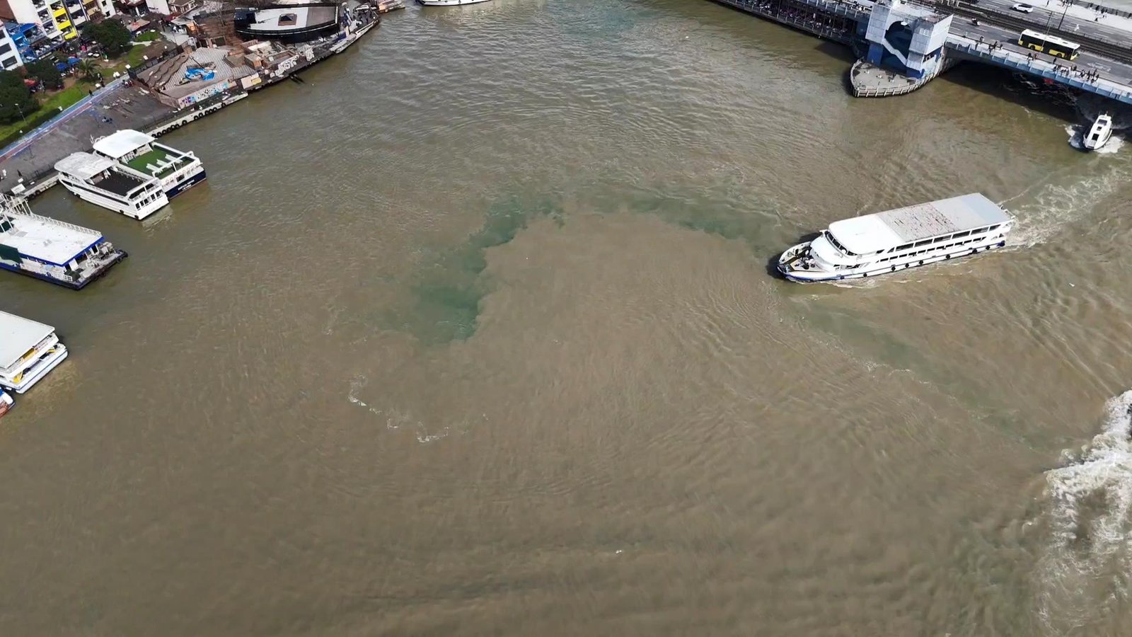 Diğer yandan İstanbul Boğazı’nın bir bölümünün renginin değişmesine de neden olan atık suların boğaza karıştığı noktalar havadan görüntülendi. Görüntülerde Haliç kıyılarının kahverengiye döndüğü alanlar rahatlıkla gözlemlenebiliyor. Eyüpsultan ve Fatih’i kapsayan bölgede etkili olan yağış sonrası, Haliç’teki çamurlu suyun yoğunluğu özellikle kıyı kesimlerde belirgin şekilde gözlemleniyor. (DHA)