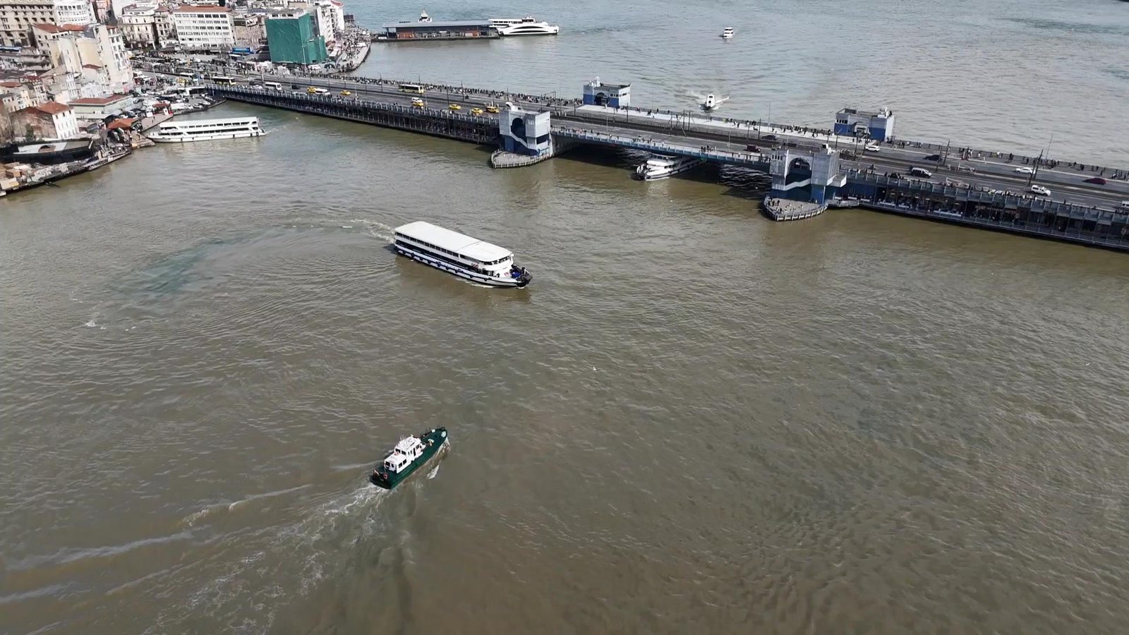 Emre KURT / İSTANBUL (DHA) – İSTANBUL`da Cuma gününden beri aralıksız yağan yağmur sonrası dereler ve kanalizasyondan gelen çamurlu sular Haliç’i ve boğazın bir bölümünü kahverengiye bürüdü. Haliç’teki renk değişimi havadan görüntülendi.