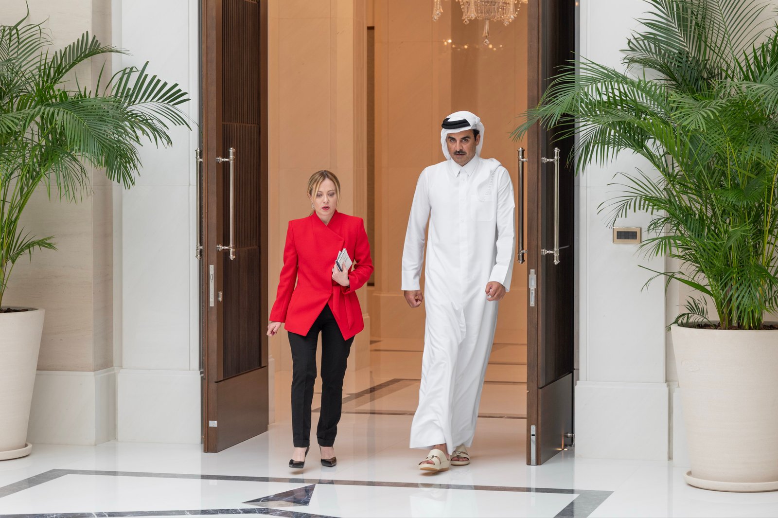 Katar Emirlik Divanı’ndan yapılan yazılı açıklamaya göre; Katar Emiri Şeyh Temim bin Hamed Al Sani ve İtalya Başbakanı Giorgia Meloni, Lusail Sarayı’nda düzenlenen toplantıda bir araya geldi. Toplantının başında Meloni’yi memnuniyetle karşıladığını belirten Al Sani, iki ülke arasındaki güçlü bağlara dikkat çekerek İtalya’nın tutumu ve yaklaşımları için teşekkürlerini iletti.