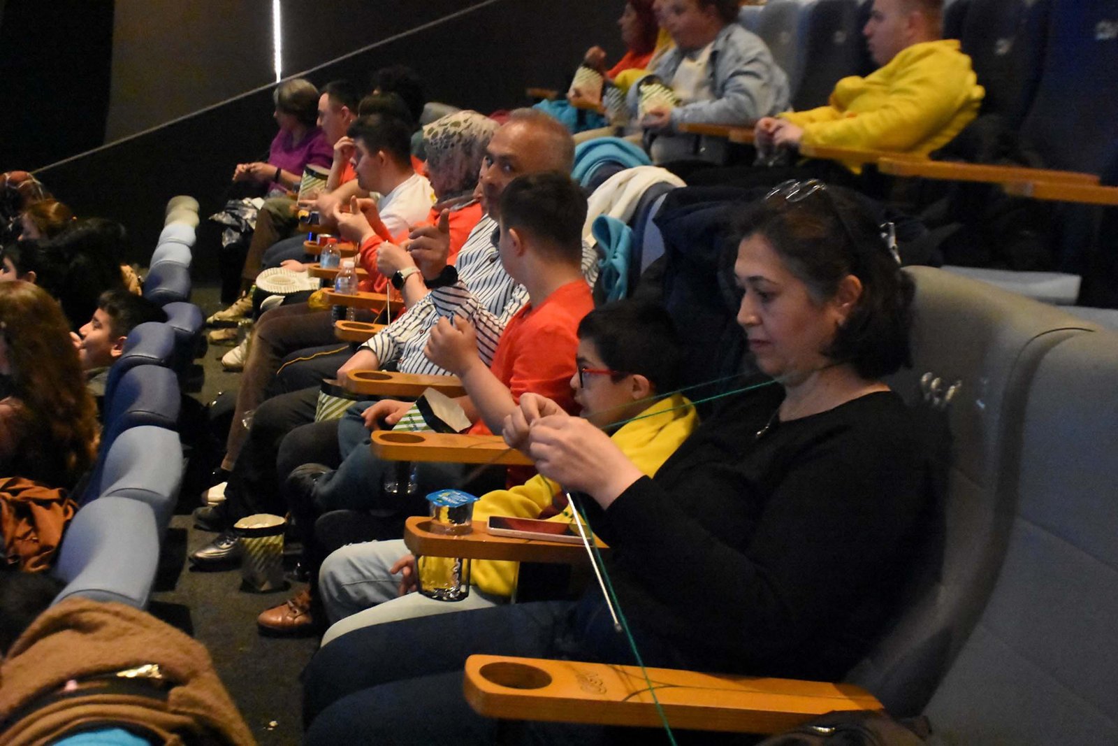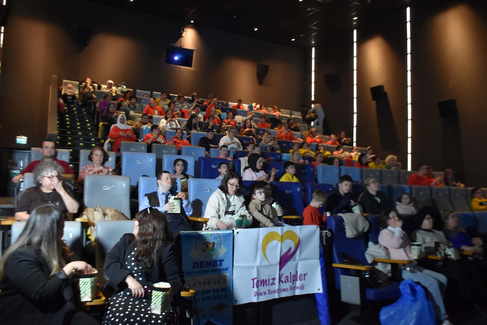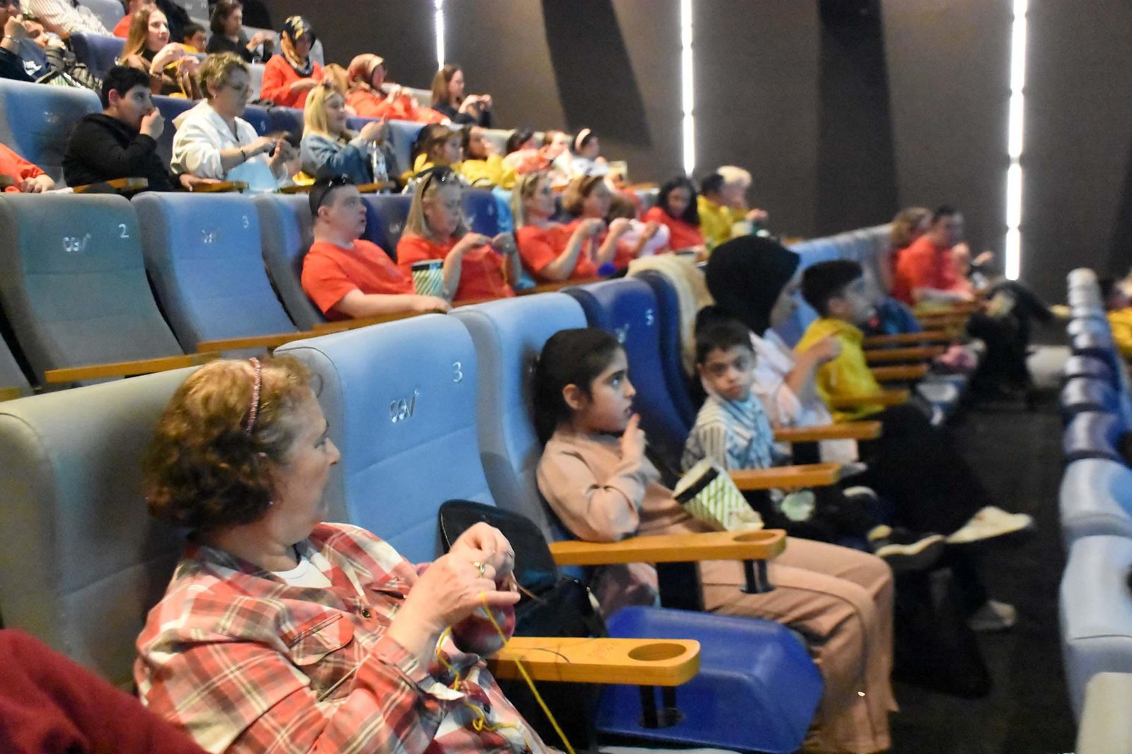 İzmir’de Temiz Kalpler Down Sendromu Derneği, bir özel eğitim kurumu ve örgü firması iş birliğiyle, Türkiye’de ilk kez Down sendromlu bireyler için 21 Mart Down Sendromu Farkındalık Haftası kapsamında Örgü Sinema İzmir Farkındalık etkinliği düzenlendi. Down sendromlu bireylerin sosyal hayata katılımının desteklenmesi ve kuşaklar arası dayanışmanın güçlendirilmesi hedefiyle hayata geçirilen proje sayesinde özel gereksinimli bireyler anneleri ile birlikte ‘Şampiyon Keçi’ filmini seyretti. 125 kişilik bir sinema salonunda patlamış mısır yiyen çocuklar ve anneleri ücretsiz olarak ağırlandı. Etkinlik için yün ve şiş desteği sağlayan Sevil Şahin, farklı illerde örgü sinema etkinliği düzenlendiklerini ancak ilk kez Down sendromlu aileler için İzmir’de bir araya geldiklerini anlattı. Şahin “Annelerle birlikte örgü öreceğiz. Küçük parçalar yapacağız. Onları atölyemizde birleştirip huzurevlerine yaşlılarımıza ısınsın diye battaniyeler yapacağız” dedi.