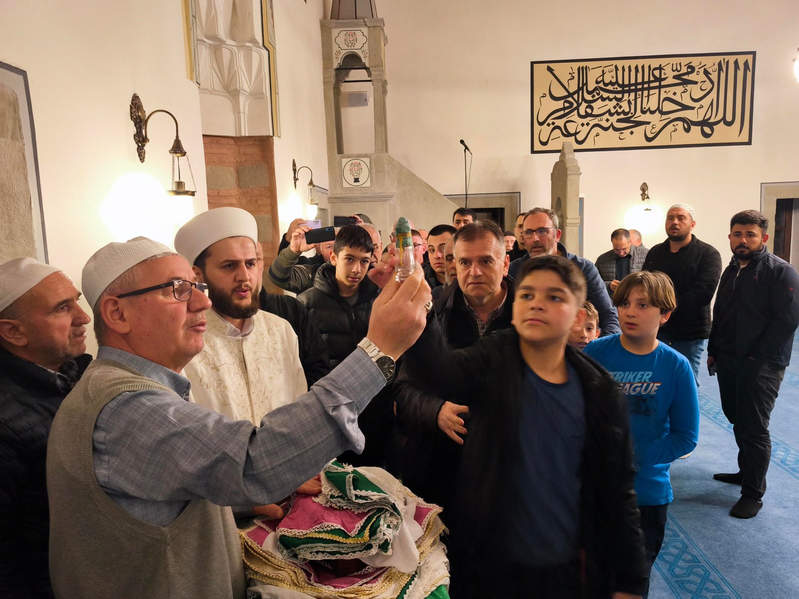 Vatandaşlar, Sakal-ı Şerif’e dokunup öpebilmek için birbirleriyle yarışırken, cami görevlileri izdiham yaşanmaması için sık sık cemaati uyardı. Bazı vatandaşlar Sakal-ı Şerif’i görünce gözyaşlarını tutamazken, bazıları ise cep telefonu kameralarıyla görüntüledi. (DHA)