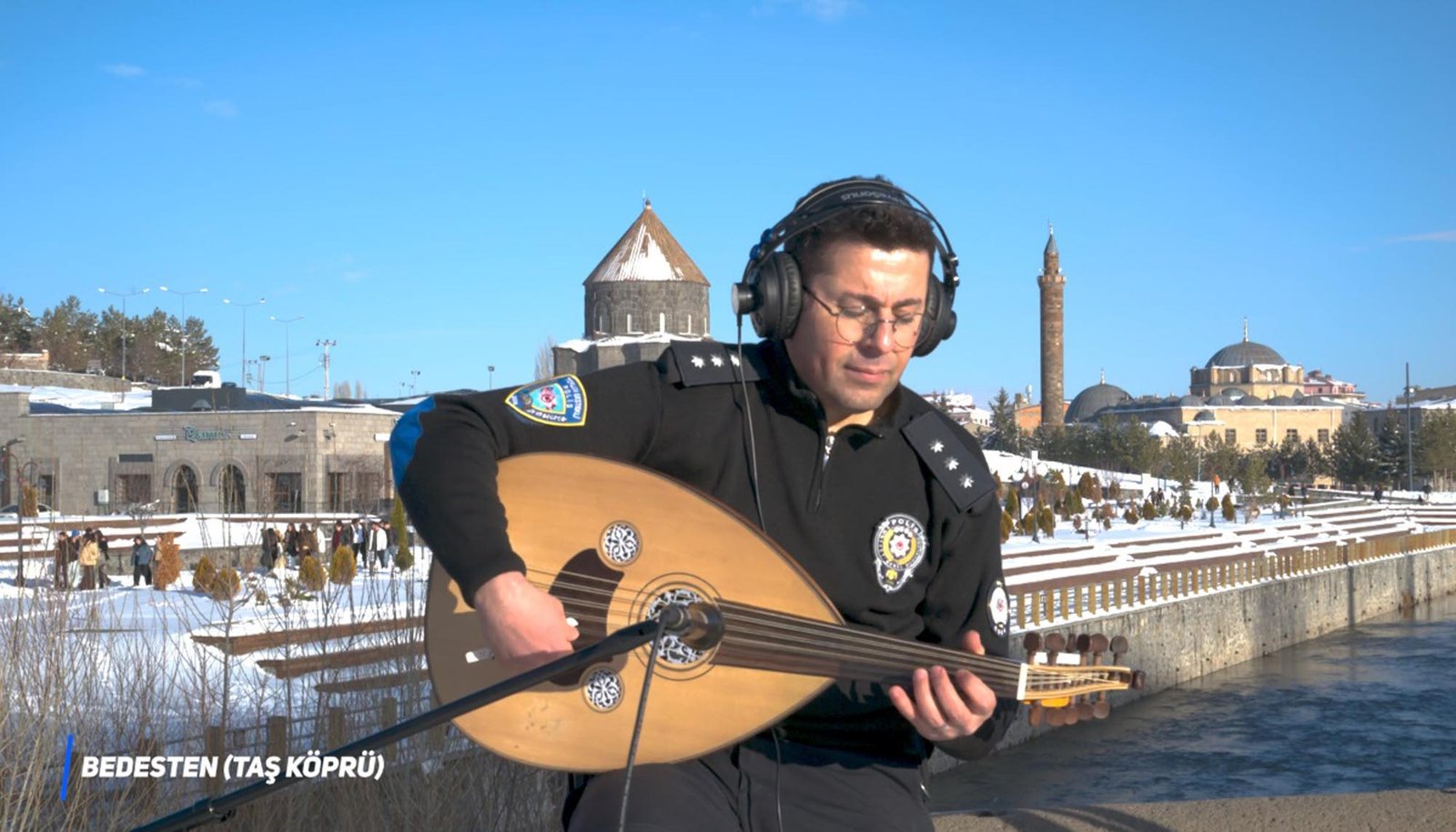 Volkan KARABAĞ/KARS, (DHA)- KARS Emniyet Müdürlüğü personeli, kentin tarihi ve kültürel mekanlarında enstrüman çalıp türkü söyledi.