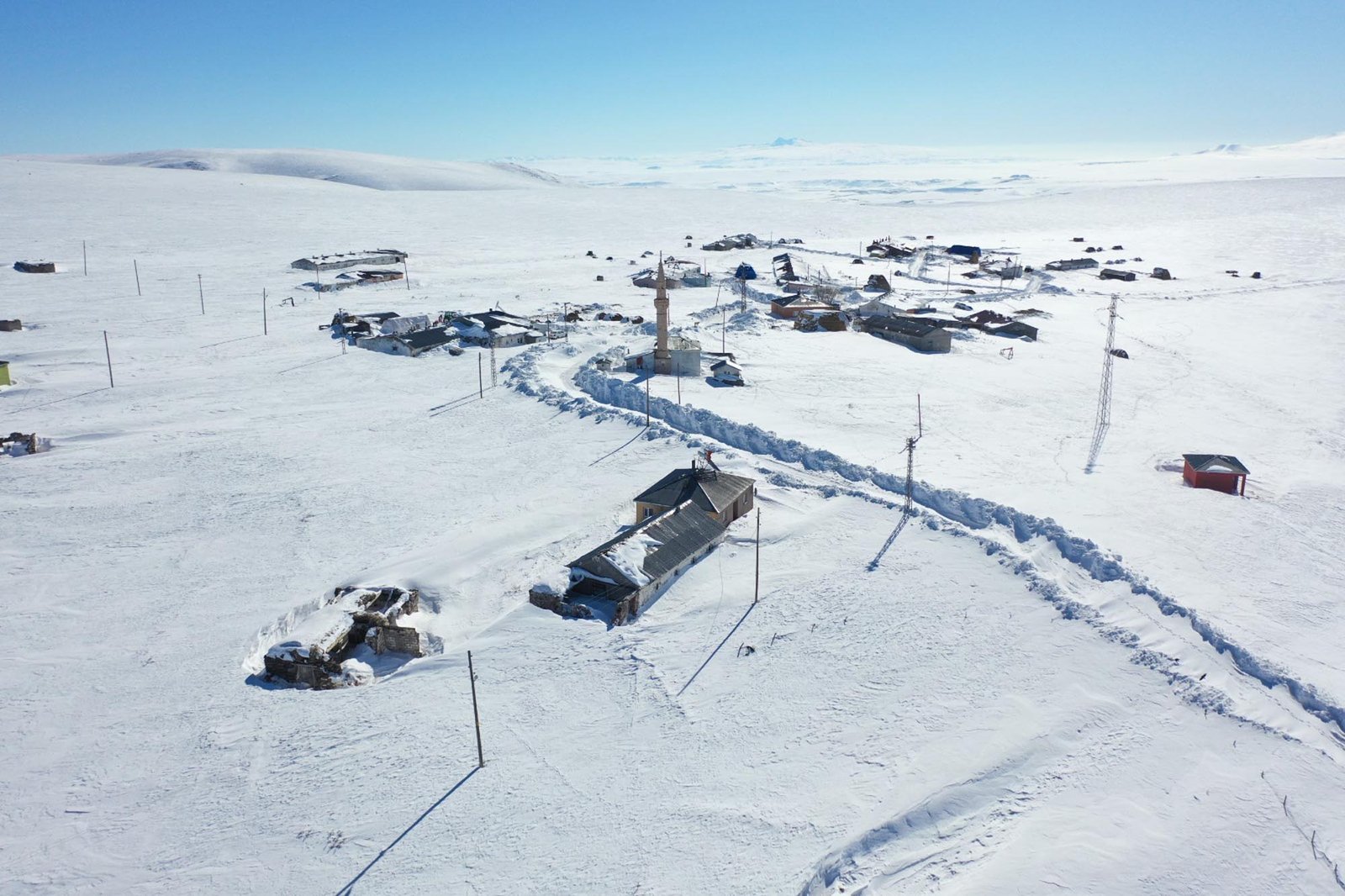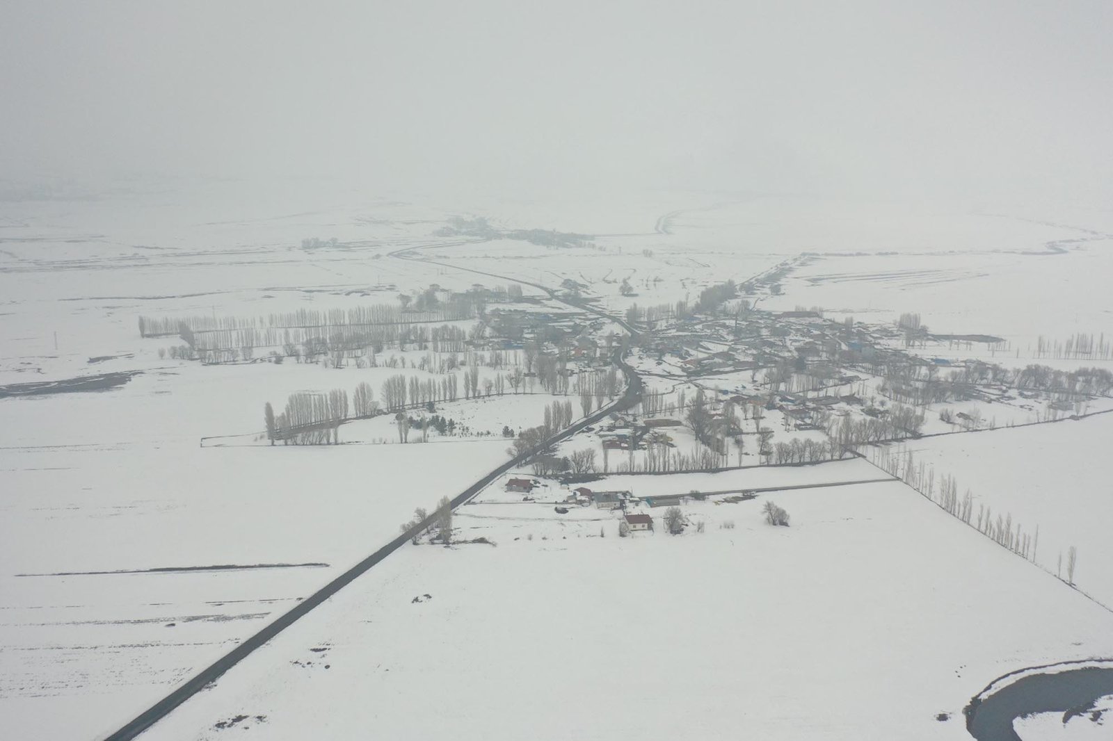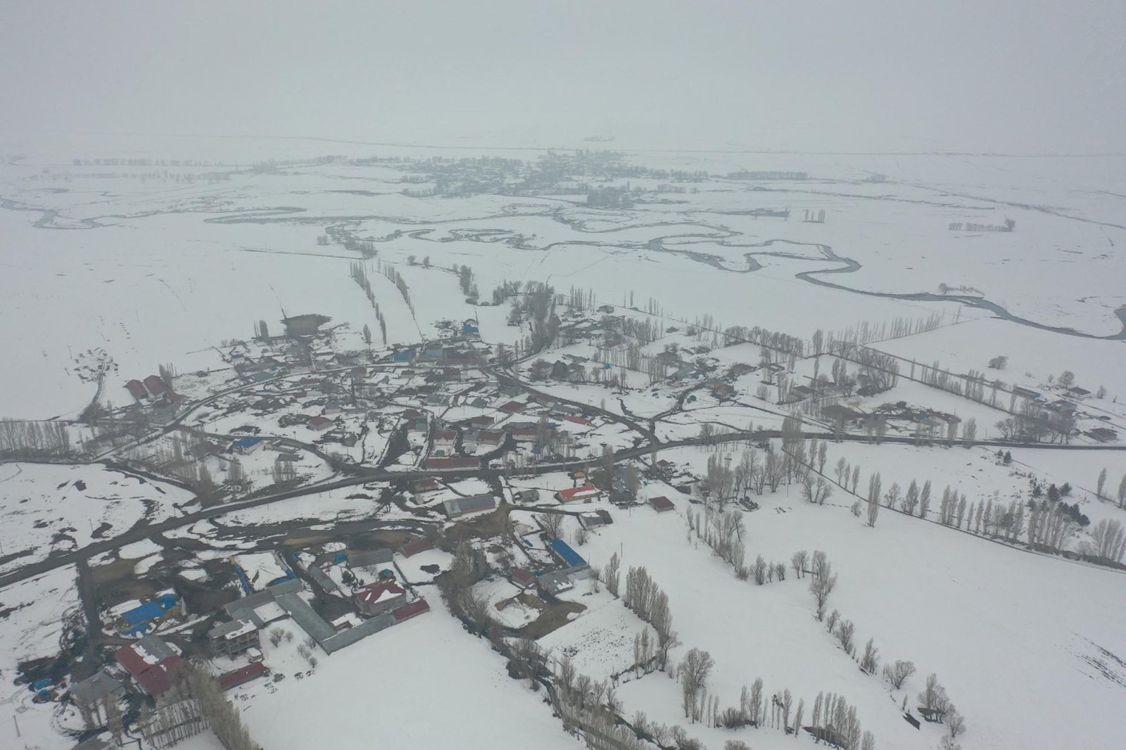 Volkan KARABAĞ/KARS, (DHA)- KARS’ın Arpaçay ilçesinde etkili olan yoğun yağış sonrası karla kaplanan köyler dronla görüntülendi.