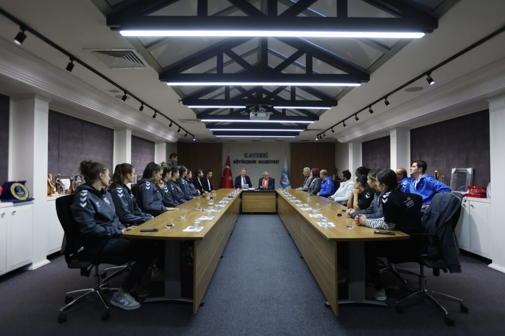 Türkiye Kadınlar Basketbol Süper Ligi’ne deplasman galibiyetiyle muhteşem bir başlangıç yapan Melikgazi Kayseri Kadın Basketbol Takımı, ligin ikinci haftasında oynayacağı ilk iç saha maçı öncesi moral depoladı. Kayseri Büyükşehir Belediye Başkanı Dr. Memduh Büyükkılıç, Melikgazi Belediye Başkanı Mustafa Palancıoğlu ve Kulüp Başkanı Yakup Yüksel ile birlikte takımın yönetici ve sporcularını makamında misafir etti. Şehrin spordaki başarı çıtasını daha da yükseltmeyi hedeflediklerini belirten Başkan Büyükkılıç, takıma yeni sezonda başarılar diledi.