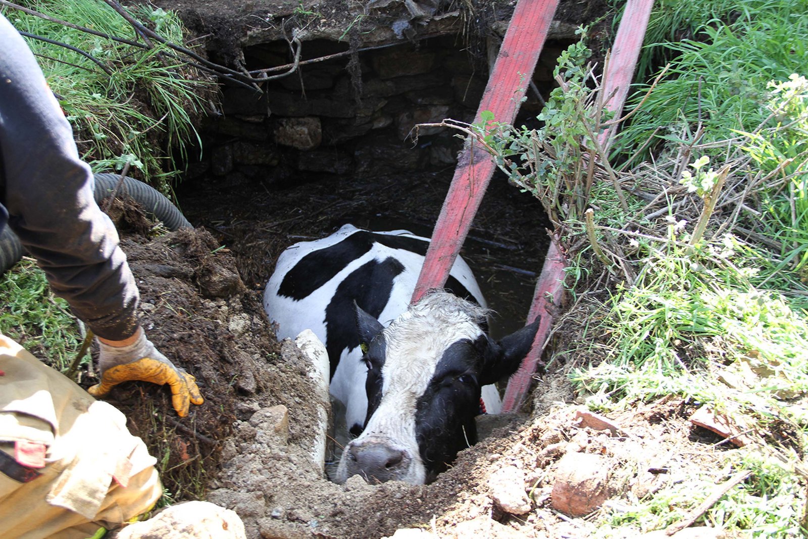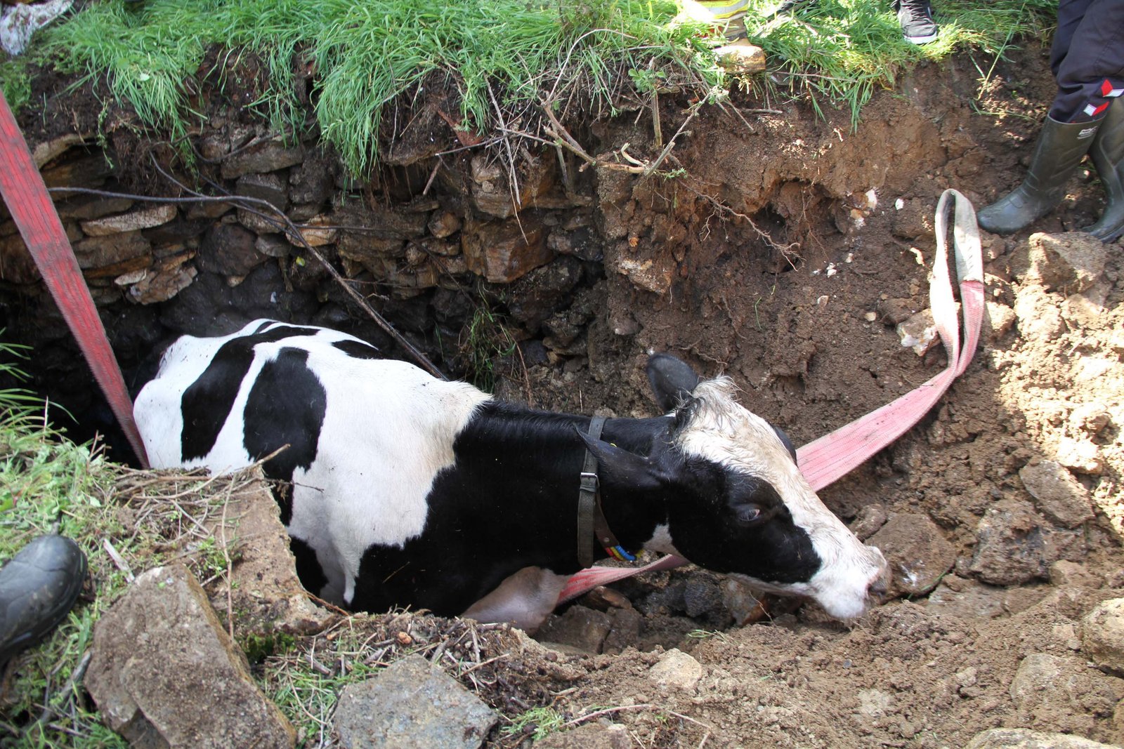 Hasan YİĞEN/KULA (Manisa), (DHA)- MANİSA’nın Kula ilçesinde su kuyusuna düşen gebe inek, itfaiye ekipleri ile vatandaşlar tarafından kurtarıldı.