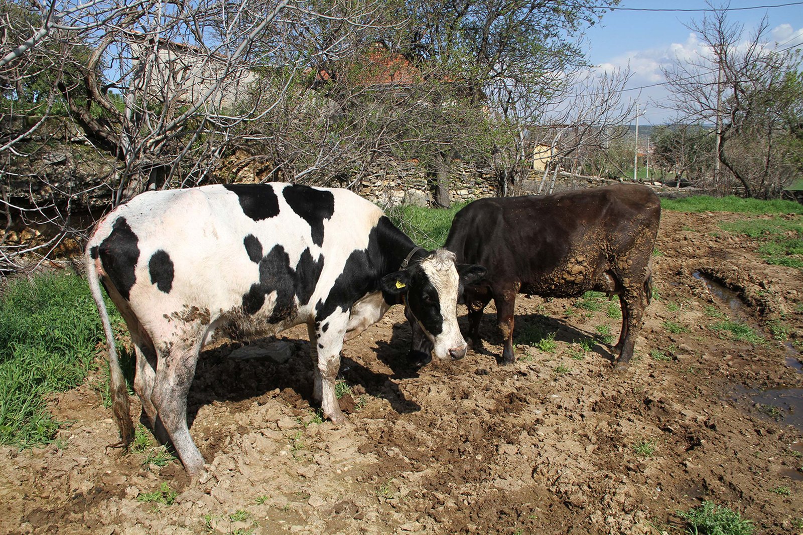 Bahattin Sarı ve ailesi, ineklerini kurtaran itfaiye ekiplerine teşekkür etti. (DHA)
