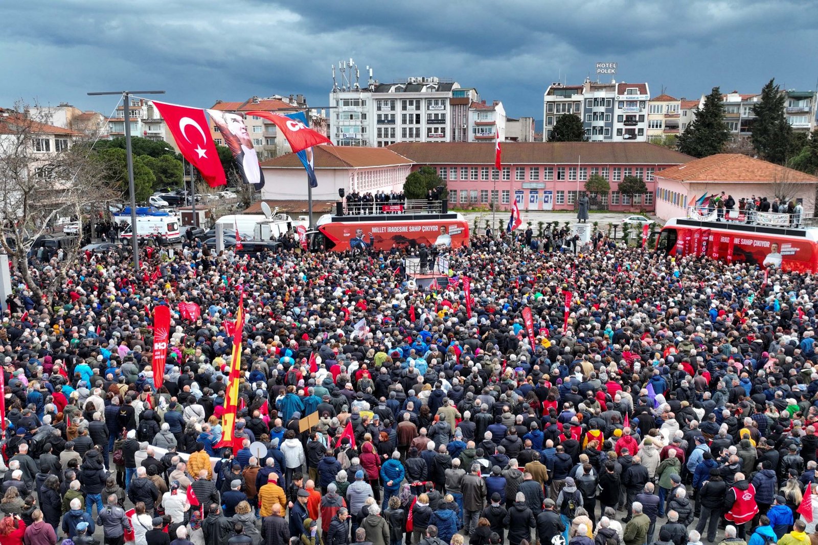 CHP Genel Başkanı Özgür Özel, 100’üncü mitingi için Çanakkale’ye geldi. Özel, Cumhuriyet Meydanı’nda düzenlenen mitingde alanı dolduranlara seslendi. Bugün tarihin akışının değiştiği, yenilmez geçilmez kentte olduklarını söyleyen CHP Genel Başkanı Özgür Özel, “Çanakkale mermi bitince süngüye doğru koşanların topraklarıdır. İşte bu mücadelenin verildiği topraklarda adalet için Cumhuriyet’in emaneti sandık için seçme seçilme hakkı için seçtiğine sahip çıkmak için iradeye sahip çıkmak için 100’üncü kez eylemdeyiz, ayaktayız. Çanakkale bu milletin tarihine vurulmuş istiklal mührüdür. CHP iktidarında Çanakkale Köprüsü, Çanakkalelilere bedava olacak. Atatürk’ün emanetine sahip çıkanlar bu köprüye para ödemeyecekler” ifadelerini kullandı.