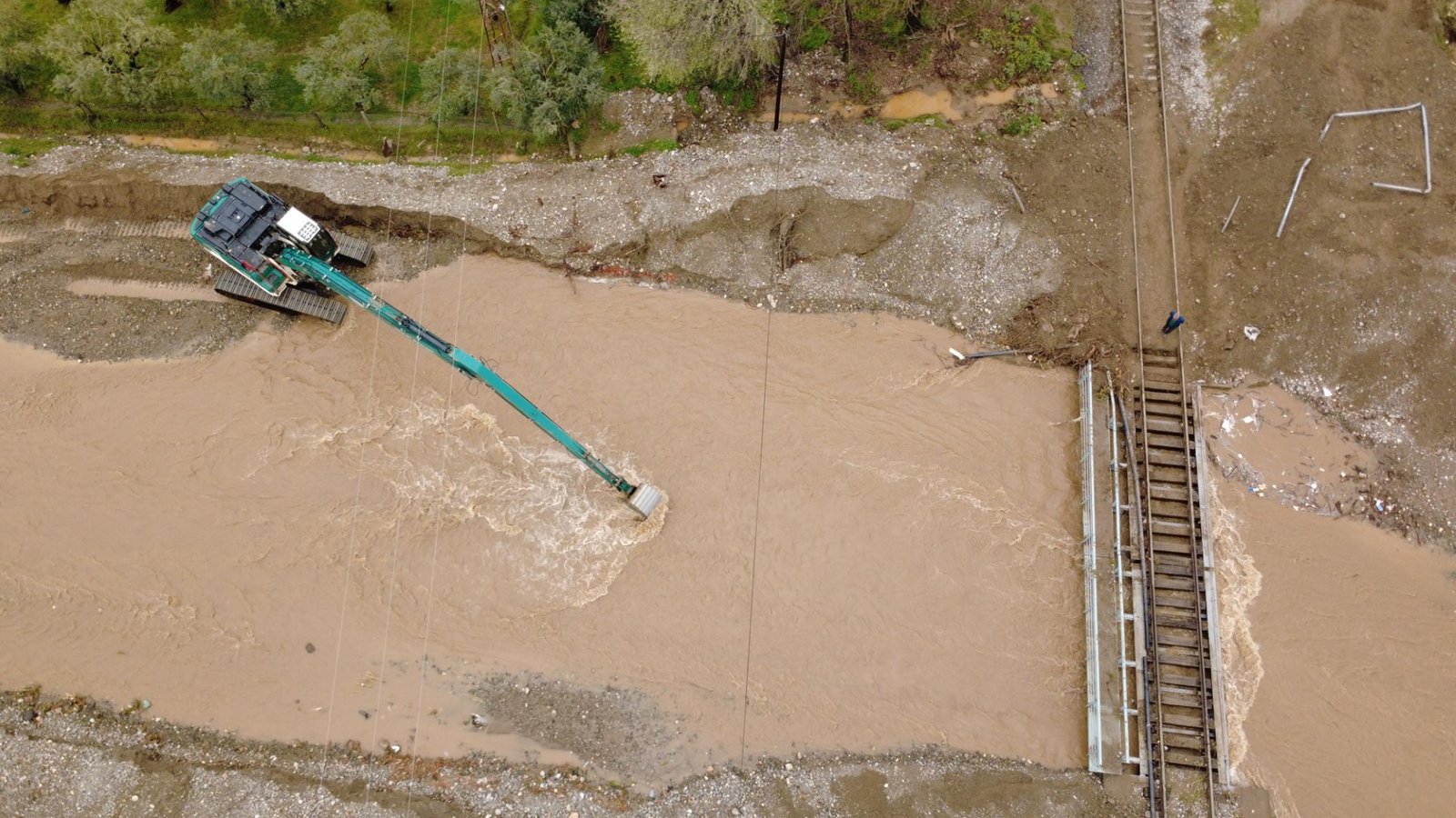 Kabazlı Deresi’nde meydana gelen taşkın nedeniyle demir yolu hattı zarar gördü. Devlet Demir Yolları ekipleri, demir yolu hattında bakım ve onarım çalışması yaparken, Devlet Su İşleri Müdürlüğü ve Salihli Belediyesi ekipleri de dere yatağında temizleme çalışması başlattı. Salihli merkezi ve kırsal mahallelerde ekiplerin çalışmalarına devam ettiği bildirildi. (DHA)
