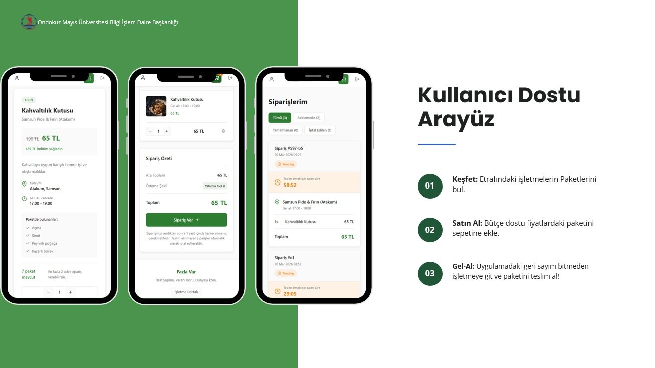 OMÜ, dünya genelinde ciddi boyutlara ulaşan gıda israfına karşı teknolojik bir çözüm geliştirerek ‘Fazla Var’ projesini hayata geçiriyor. Rektör Prof. Dr. Fatma Aydın’ın fikir öncülüğünde, üniversitenin Bilgi İşlem Daire Başkanlığı tarafından yazılımı tamamlanan uygulama restoran, kafe ve fırın gibi işletmelerin gün sonunda ellerinde kalan, tazeliğini koruyan ama ertesi güne de bırakılmayacak ürünlerin uygun fiyatlarla tüketiciye ulaştırmayı hedefliyor. Türkiye’de her yıl çöpe giden yaklaşık 19 milyon ton gıdayı ekonomiye geri kazandırmayı amaçlayan sistem, konum tabanlı bir ‘pazar yeri’ olarak çalışacak. Kullanıcılar, mobil uygulama üzerinden çevrelerindeki işletmeleri filtreleyerek çorbadan tatlıya kadar pek çok taze ürüne yüzde 50 ile yüzde 70 arasındaki indirimlerle ulaşabilecek. ‘Gel-al’ mantığıyla işleyecek olan bu dijital platform hem taze ve sağlıklı gıdaya erişimini kolaylaştırması hem de sıfır atık vizyonuyla çevresel sürdürülebilirliğe katkı sağlayacak. Yazılım süreci tamamlanan uygulamanın kısa süre içinde uygulama mağazalarında ve fazlavar.com adresi üzerinden hizmet vermeye başlayacak.