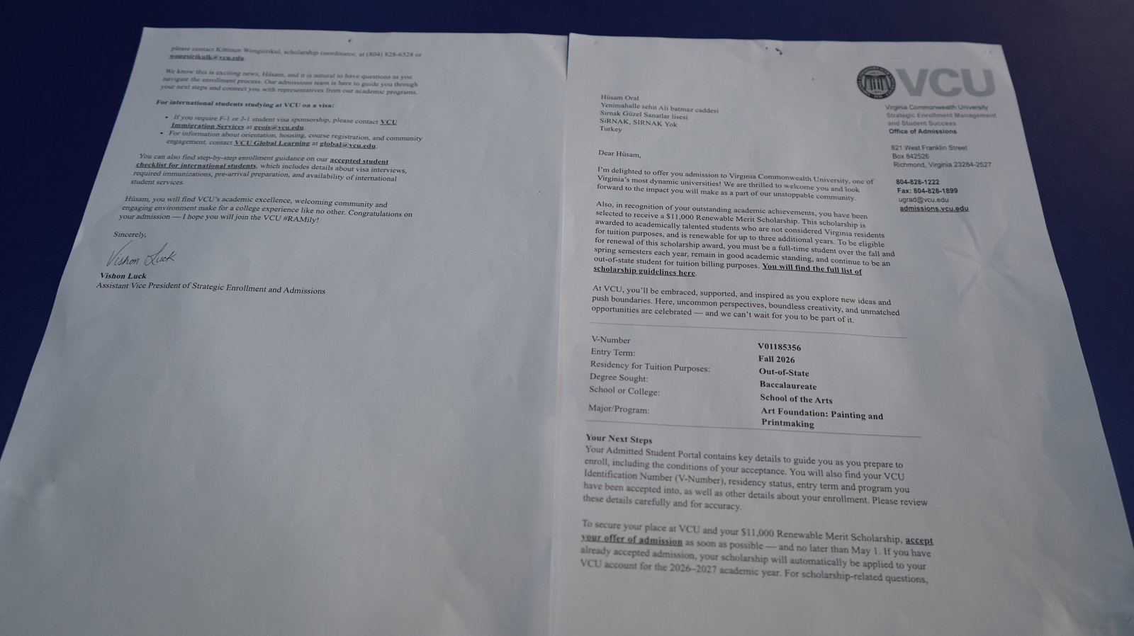 Başvuru sürecinde yaşadığı zorlukları anlatan Hüsam Oral, çevre baskısına rağmen pes etmediğini belirterek “Virginia Commonwealth University’den birinci olarak kabul edildim. Ayrıca Savannah College of Art and Design’dan da kabul aldım. Amerika’da eğitim alarak kendimi geliştirmek ve sanat alanında yolculuğuma devam etmek istiyorum. Bu süreçte destek olacak sponsor arayışındayım. Şırnak’tan Amerika’ya uzanan bu yolculukta umudu olmayan insanlar vardı ama ben yılmadım. Birçok kişi Şırnak’tan Amerika’ya gidilebileceğine dair ümitsizdi. Bazı hocalarım TYT’ye çalışmamı önerdi ama sanat hocalarım çok destek oldu. Son başvuru tarihi 15 Ocak’tı; ben 14 Ocak’ta babaannem hastanedeyken başvurumu tamamladım. Dünyanın en prestijli okullarından biri olduğu için açıkçası kabul beklemiyordum. 3 Şubat gece yarısı tam burslu kabul haberi geldiğinde mutluluktan ne yapacağımı şaşırdım” dedi.