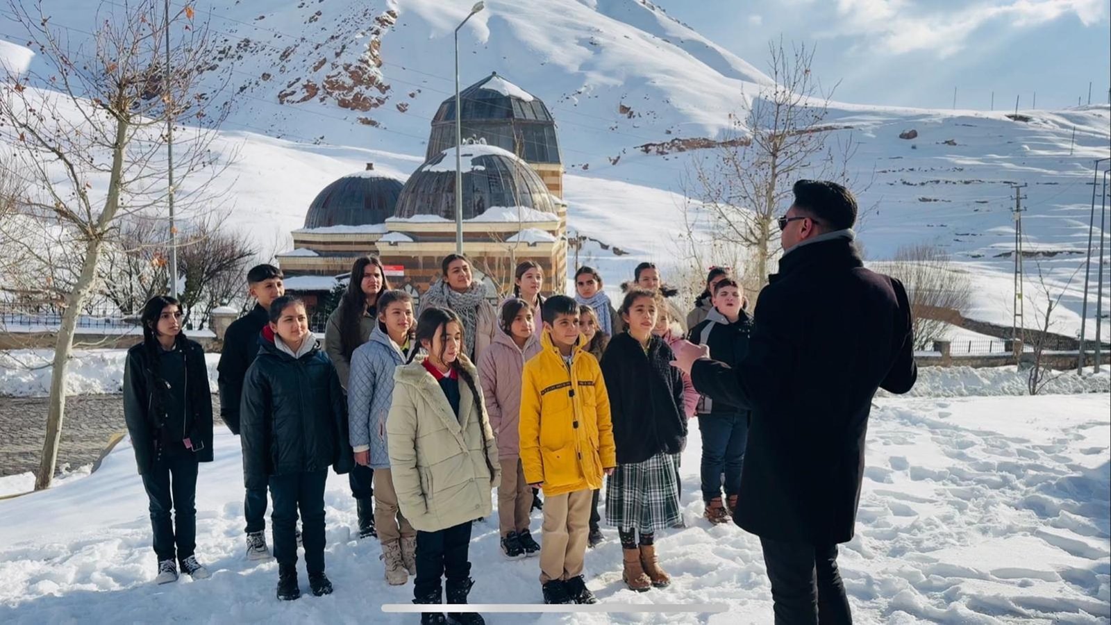 DOĞUBAYAZIT (Ağrı), (DHA)- AĞRI’nın Doğubayazıt ilçesindeki müzik öğretmenleri, ‘Maarifin Kalbinde Ramazan’ temalı etkinlikler kapsamında öğrencilerle birlikte ilçenin tarihi ve doğal güzellikleri arasında ‘En Sevgili’ ilahisini seslendirdi.