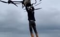 Çiftçi, drona tutunarak tarlanın diğer tarafına geçti