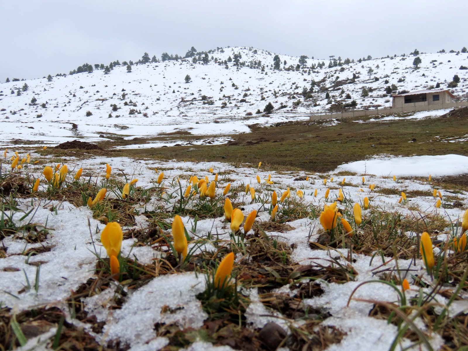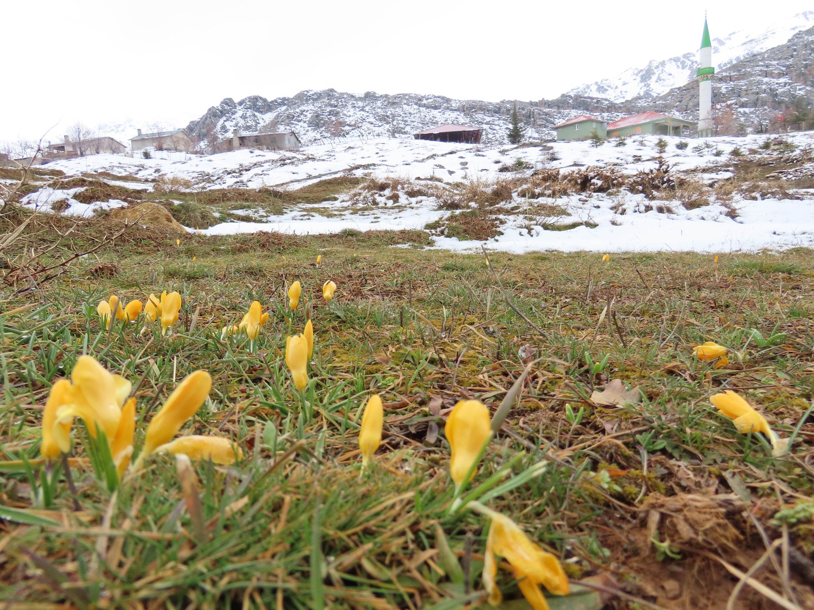 Mehmet ÇINAR/ANTALYA, (DHA)-TOROS Dağları’nın Antalya-Konya sınırındaki zirve yaylalarında karlar erimeye başlarken; sarıçiğdem, nevruz ve sümbüller doğayı renklendirdi.